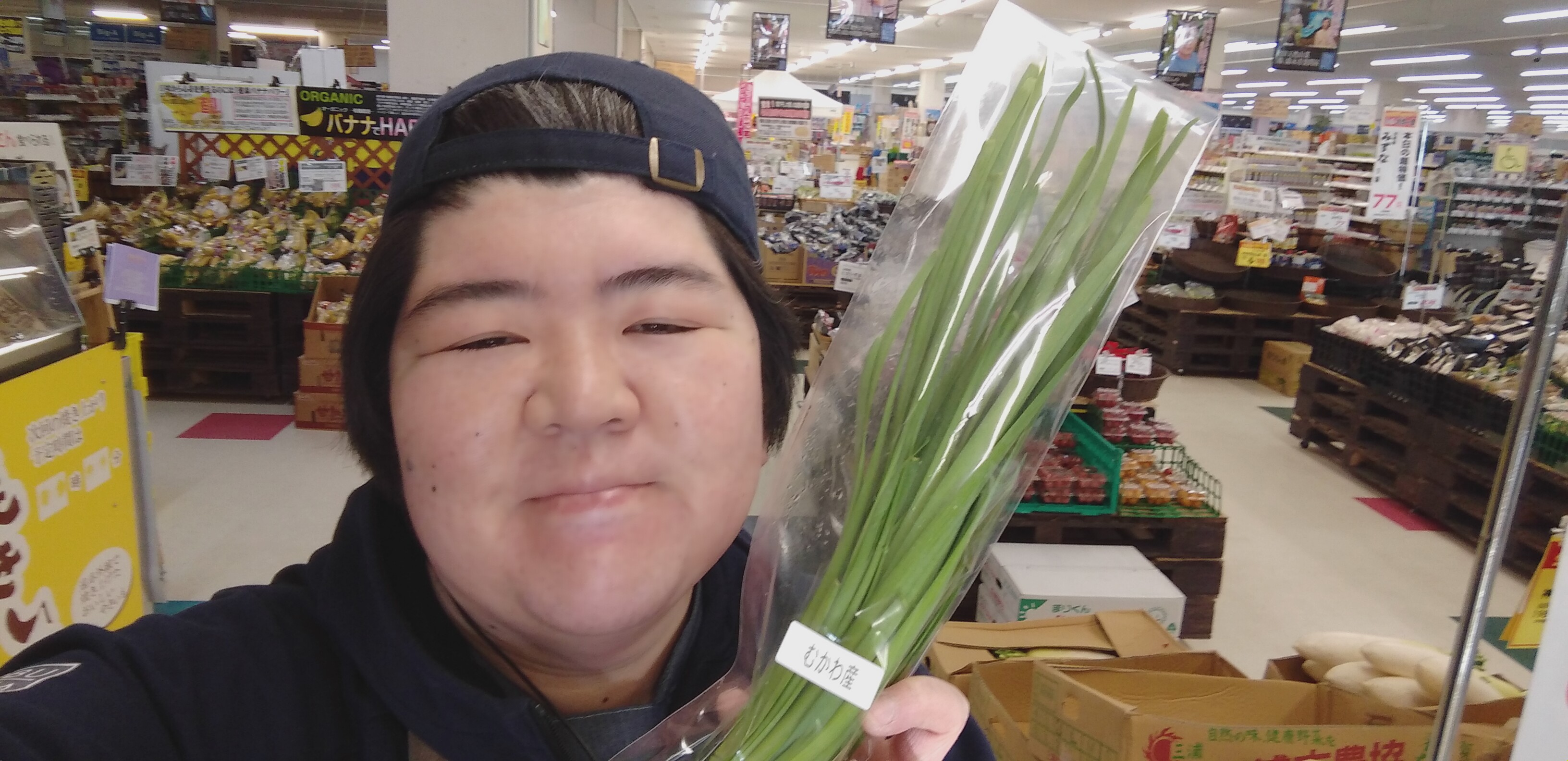 おはようございます。青果担当奥瀬です。本日はスーパー大均一祭最終日です。鵡川町産のにらがお買い得です。ニラ玉、チヂミにいかがでしょうか。鵡川町産にら、1束99円です。是非ご利用くださいませ。