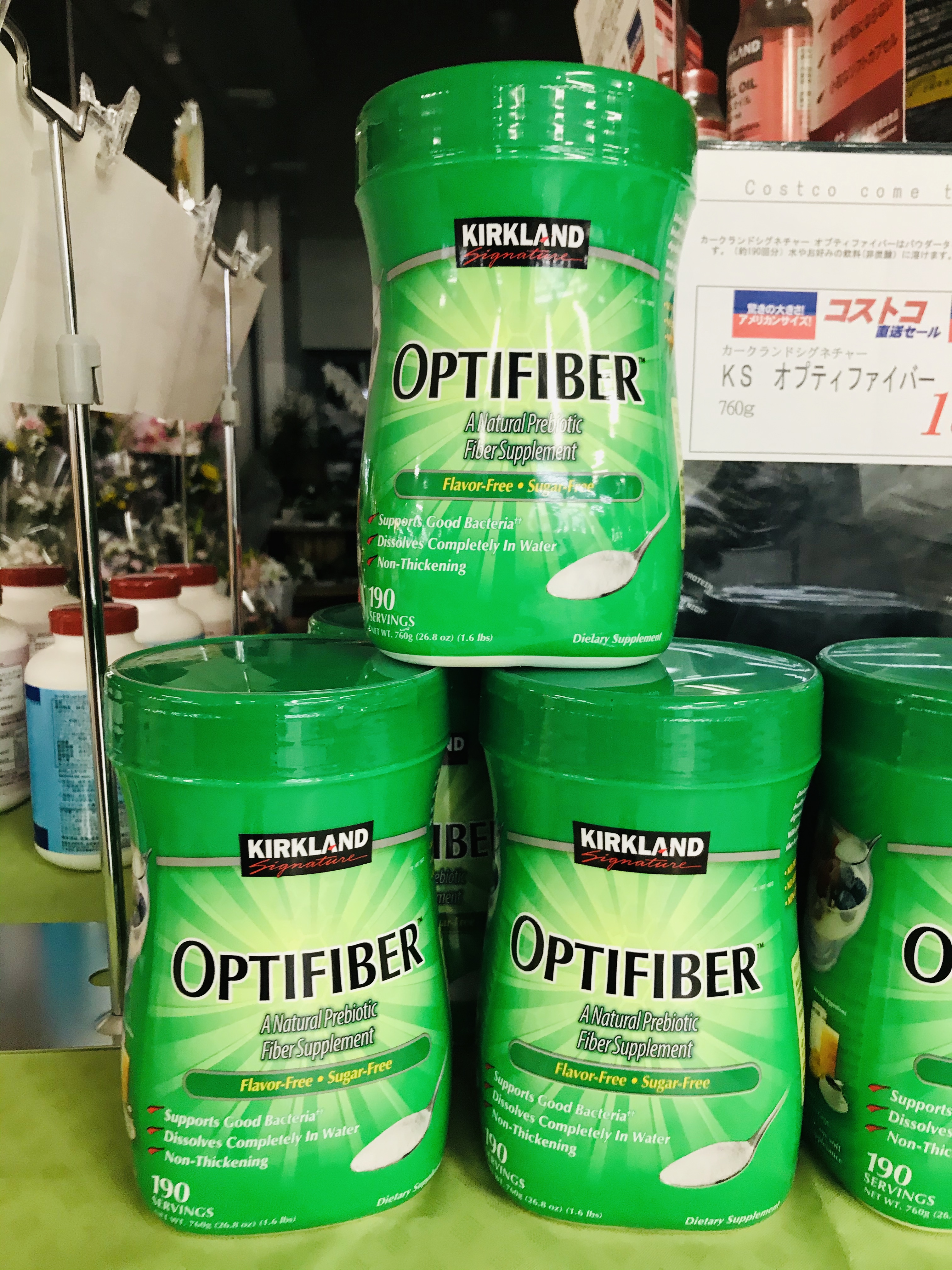 コストコでは『オプティファイバー(OPTIFIBER)』という商品名で販売されておりまして、わざわざトクホ商品を買わなくても、自宅で難消化性デキストリンを摂取することは可能です。