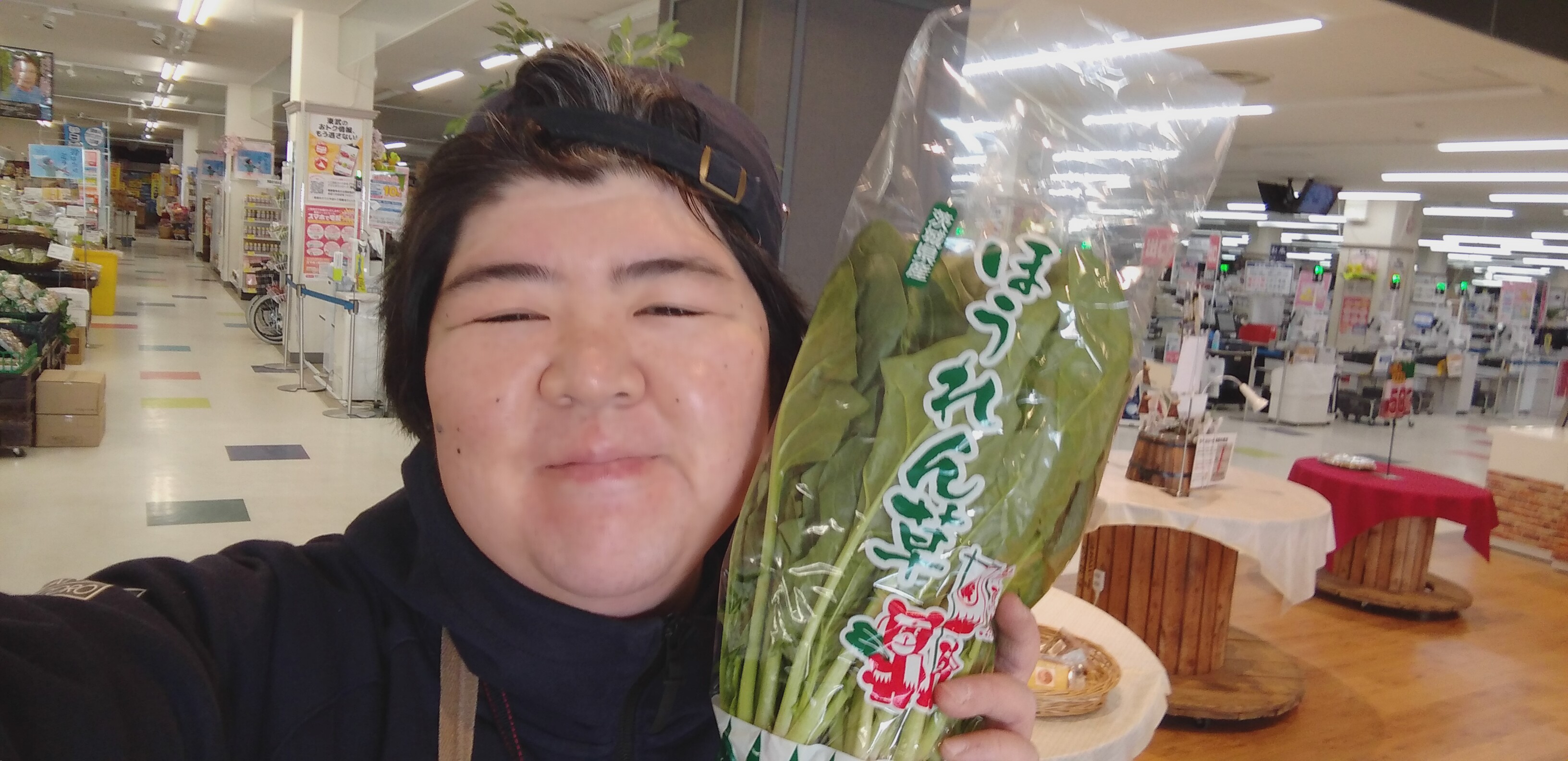 おはようございます。青果担当奥瀬です。本日よりスーパー大均一祭です。青果コーナーでもお買い得な商品を多数ご用意しております。青果コーナーの本日のオススメは、茨城産他のほうれん草。和え物、パスタ、おひたしにいかがでしょうか?1袋129円です。ぜひご利用くださいませ。