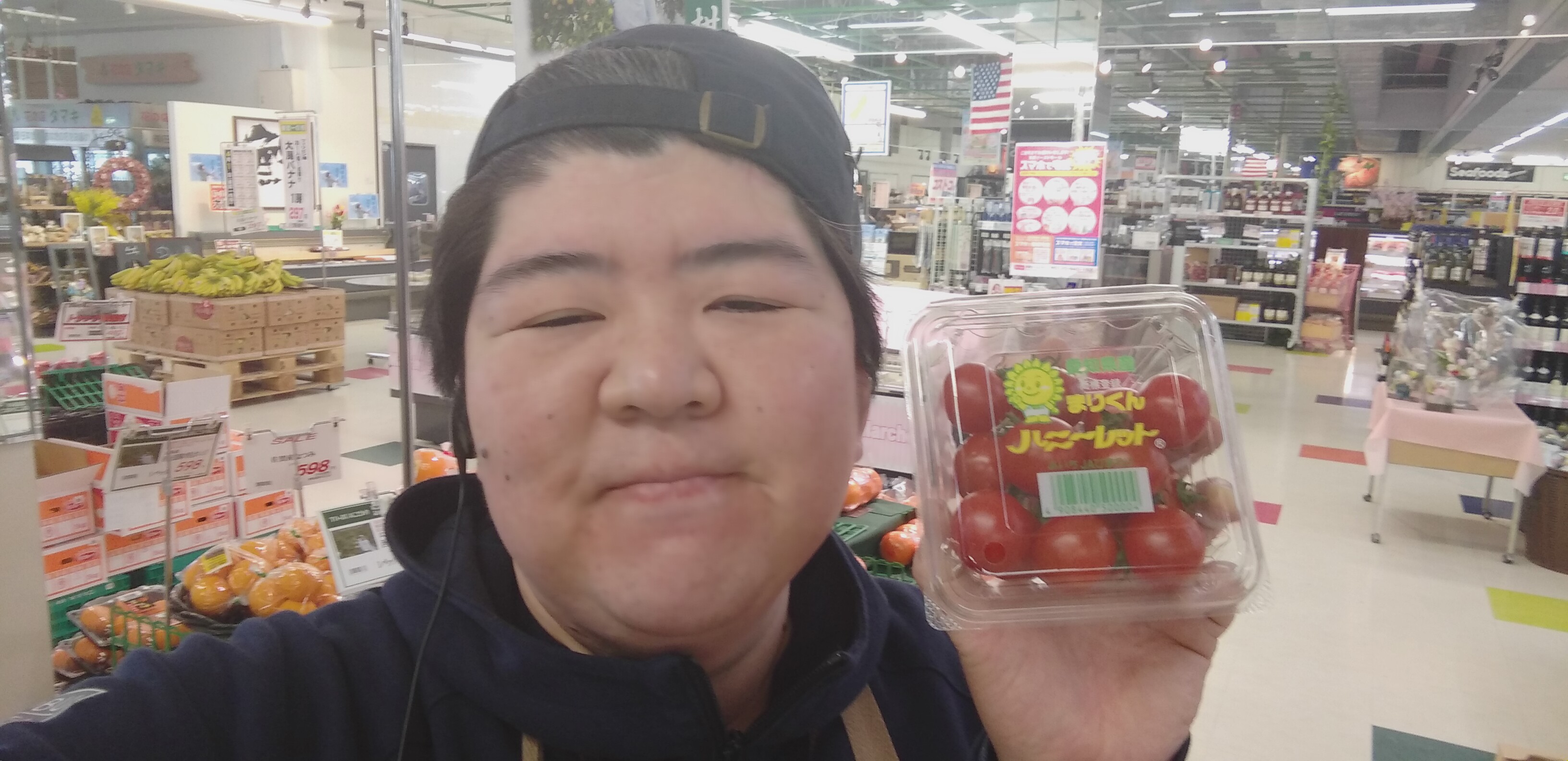おはようございます。青果担当奥瀬です。本日は1日。毎月恒例の東武一の市です。お買い得な商品を多数ご用意しております。本日のオススメは愛知産他、ミニトマト。1パック159円です。ぜひご利用くださいませ。皆様の御来店をお待ちしております!