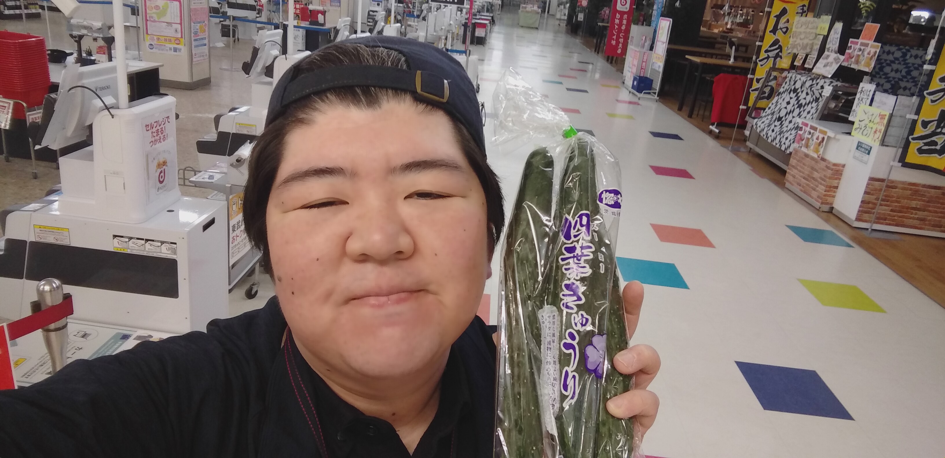 おはようございます。青果担当奥瀬です。本日は茨城直送セールです。茨城からの新鮮な野菜を入荷してます。本日のオススメは四葉きゅうり。濃厚な風味と心地よい歯切れが楽しめるきゅうり。サラダに、漬物に、炒め物に…色々使えるきゅうりです。茨城産四葉きゅうり、1袋198円です。ぜひご利用くださいませ。