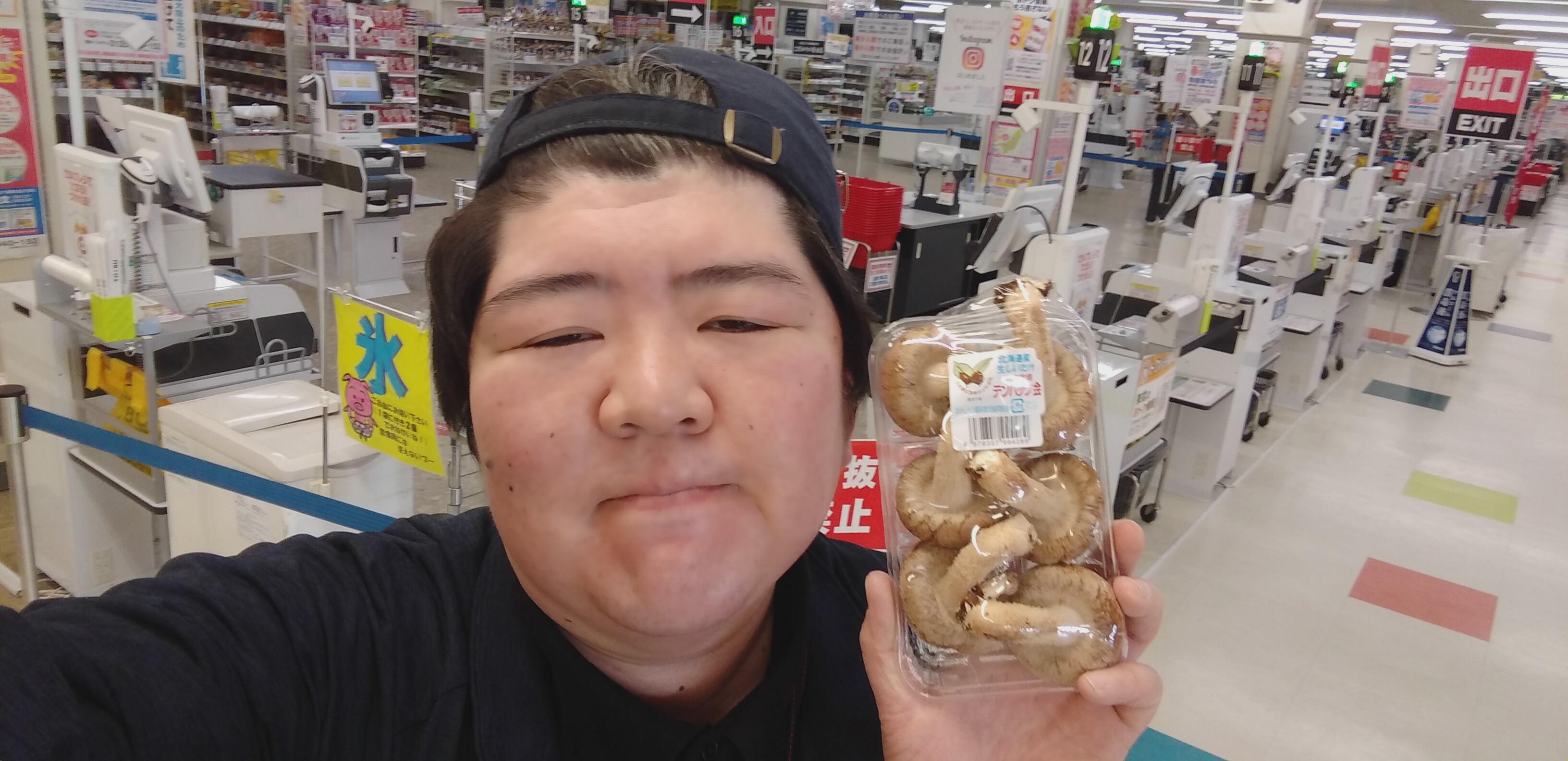 おはようございます。青果担当奥瀬です。本日はスーパー大均一祭。青果コーナーでもお買い得な商品を多数ご用意しております。たとえば、北海道産の生しいたけ。1パック99円とお買い得です。旨みがギュッと詰まったきのこ。ぜひご利用くださいませ。
