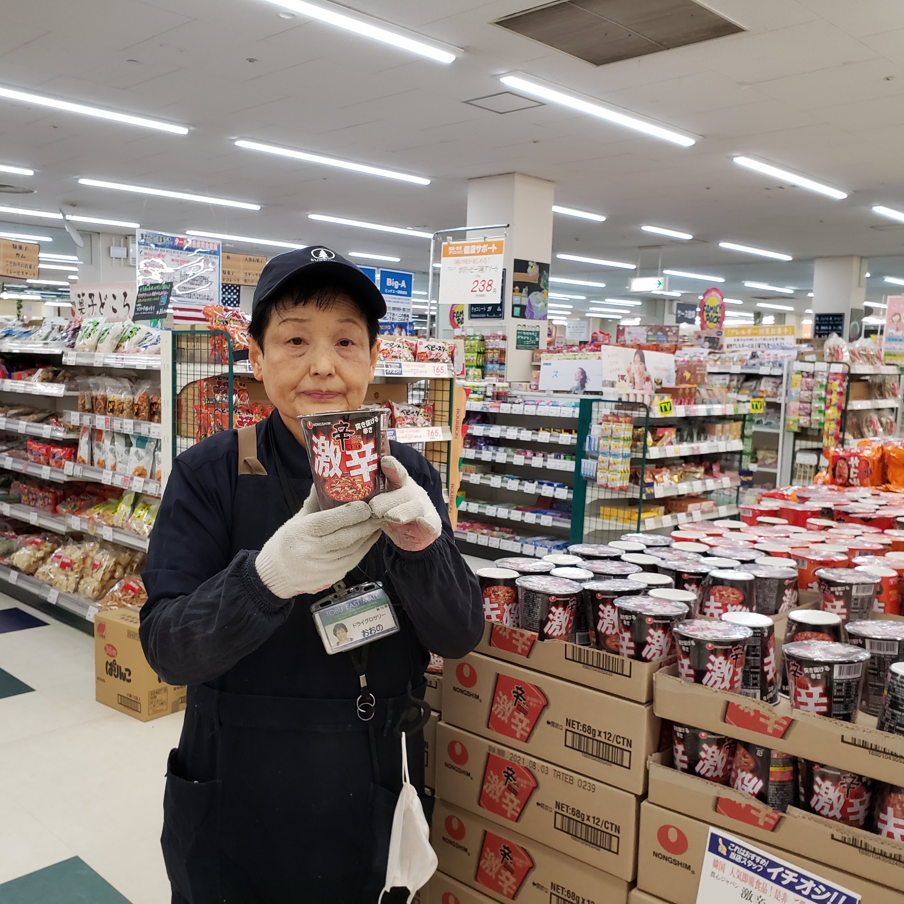 食品コーナーからは!おすすめ!!辛さを楽しみたい方におすすめ!!農心ジャパン 激辛 辛ラーメン!!キムチ辛ラーメン!!うまからっ!辛ラーメンの3種類!価格は148円です。是非お買い求めくださいませ。
