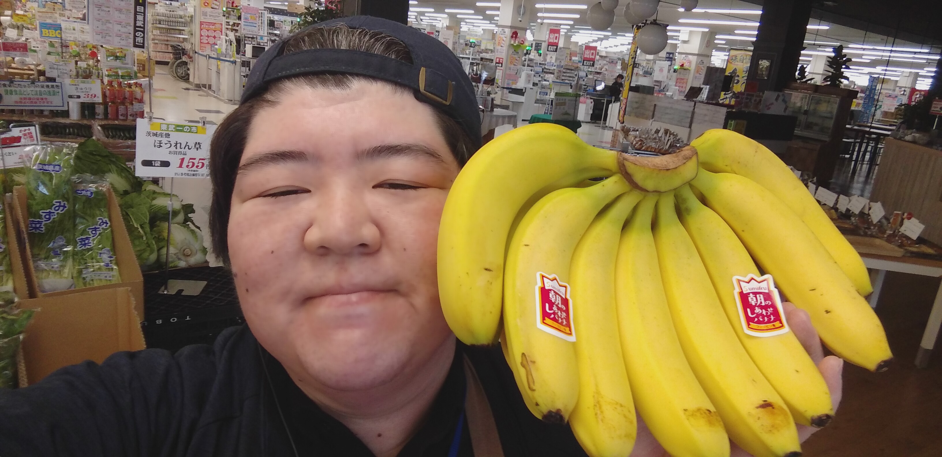 おはようございます。青果担当奥瀬です。本日は毎月恒例一の市。青果コーナーでもお買い得な商品を沢山ご用意しております。たとえば、フィリピン産のバナナ。1房199円です。ぜひご利用くださいませ。皆様の御来店をお待ちしております。