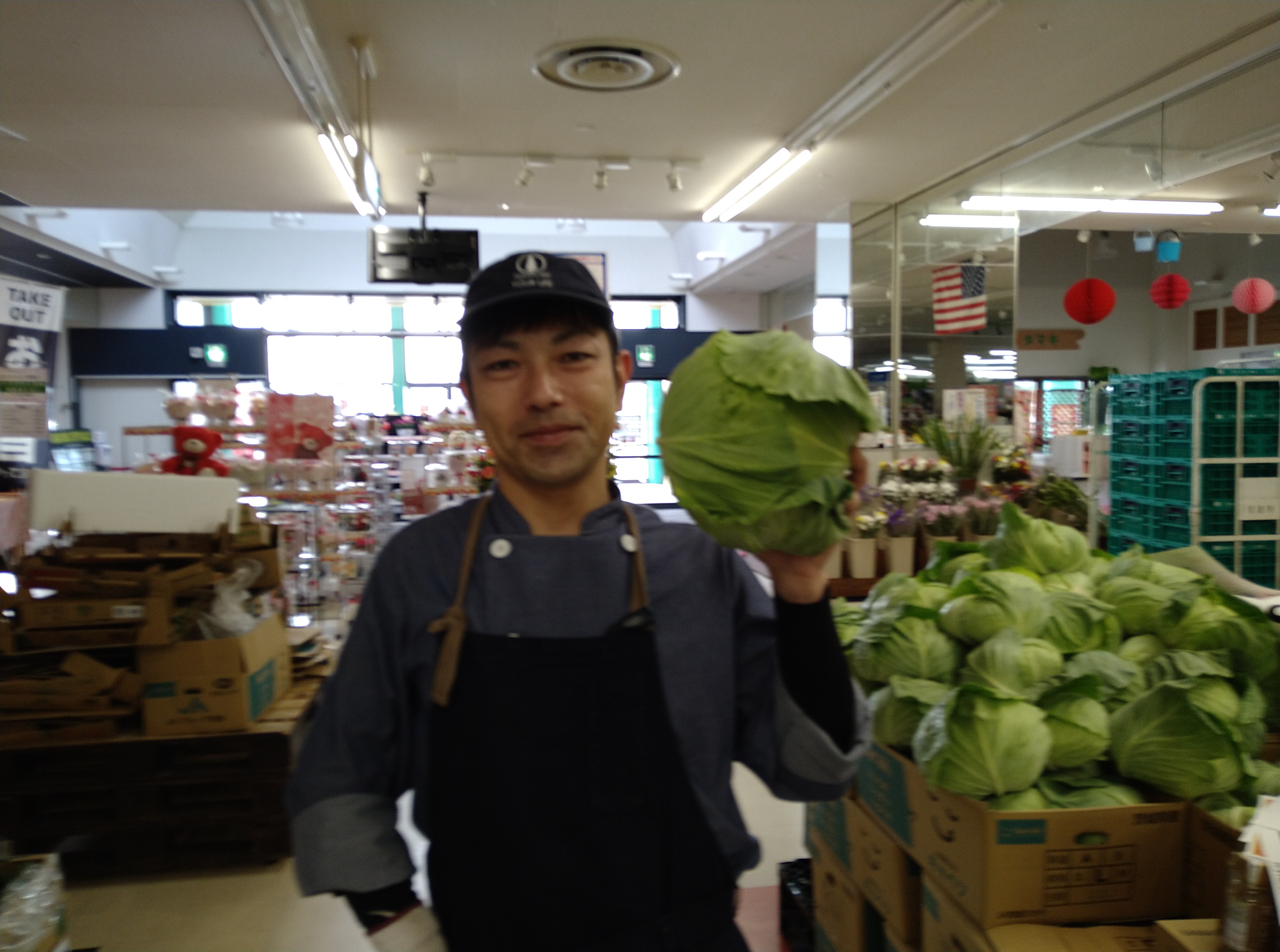 本日のお買得品は、茨城産キャベツ1玉99円です。 炒め物にどうぞ