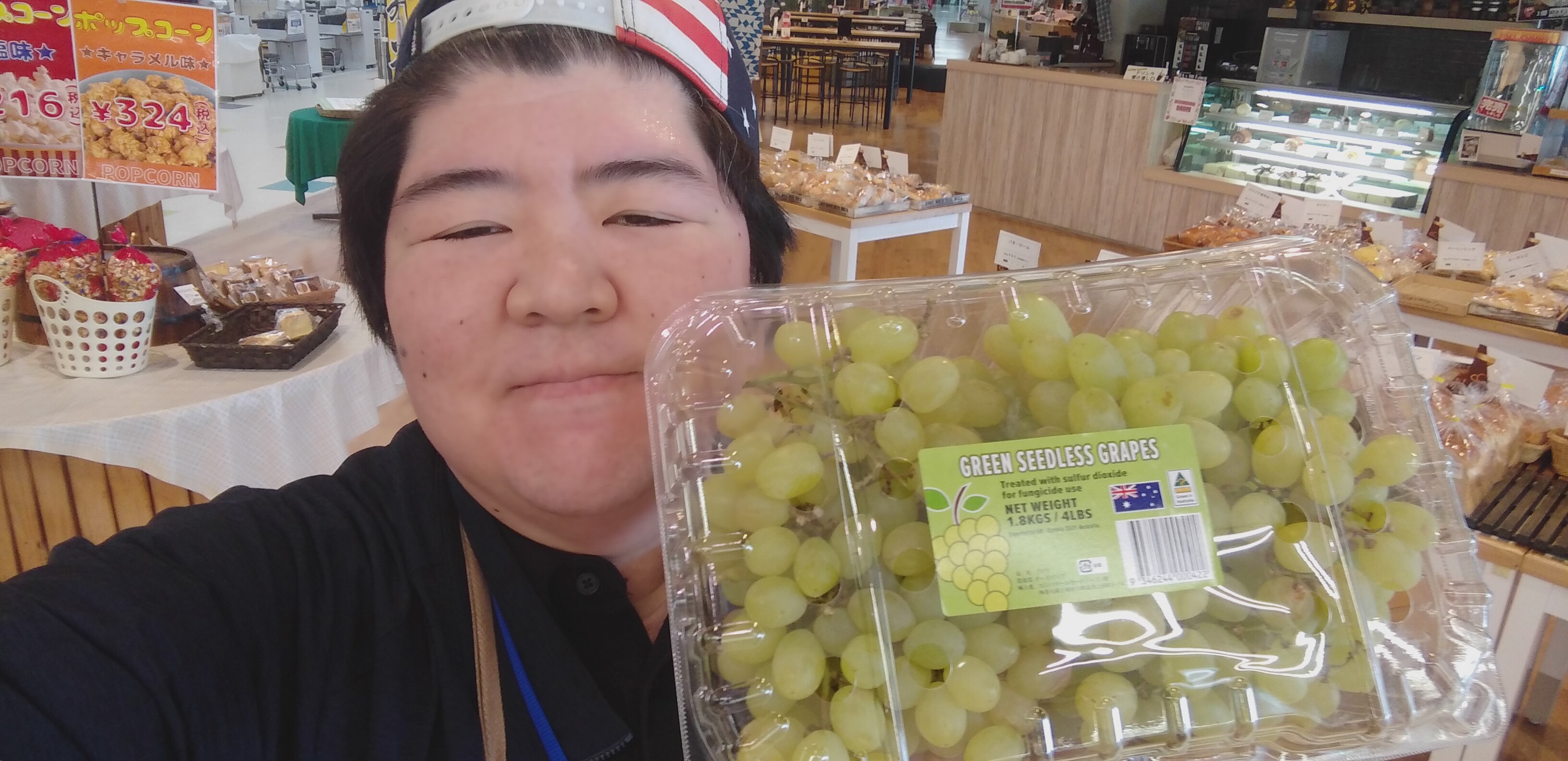 おはようございます。青果担当奥瀬です。本日もコストコ直送セール開催中です。本日のオススメは、オーストラリア産のシードレスぶどうです。約1.8キロ入り1パックが1680円です。種無しで皮ごと食べられるぶどう。ぜひご利用くださいませ。皆様の御来店をお待ちしております。