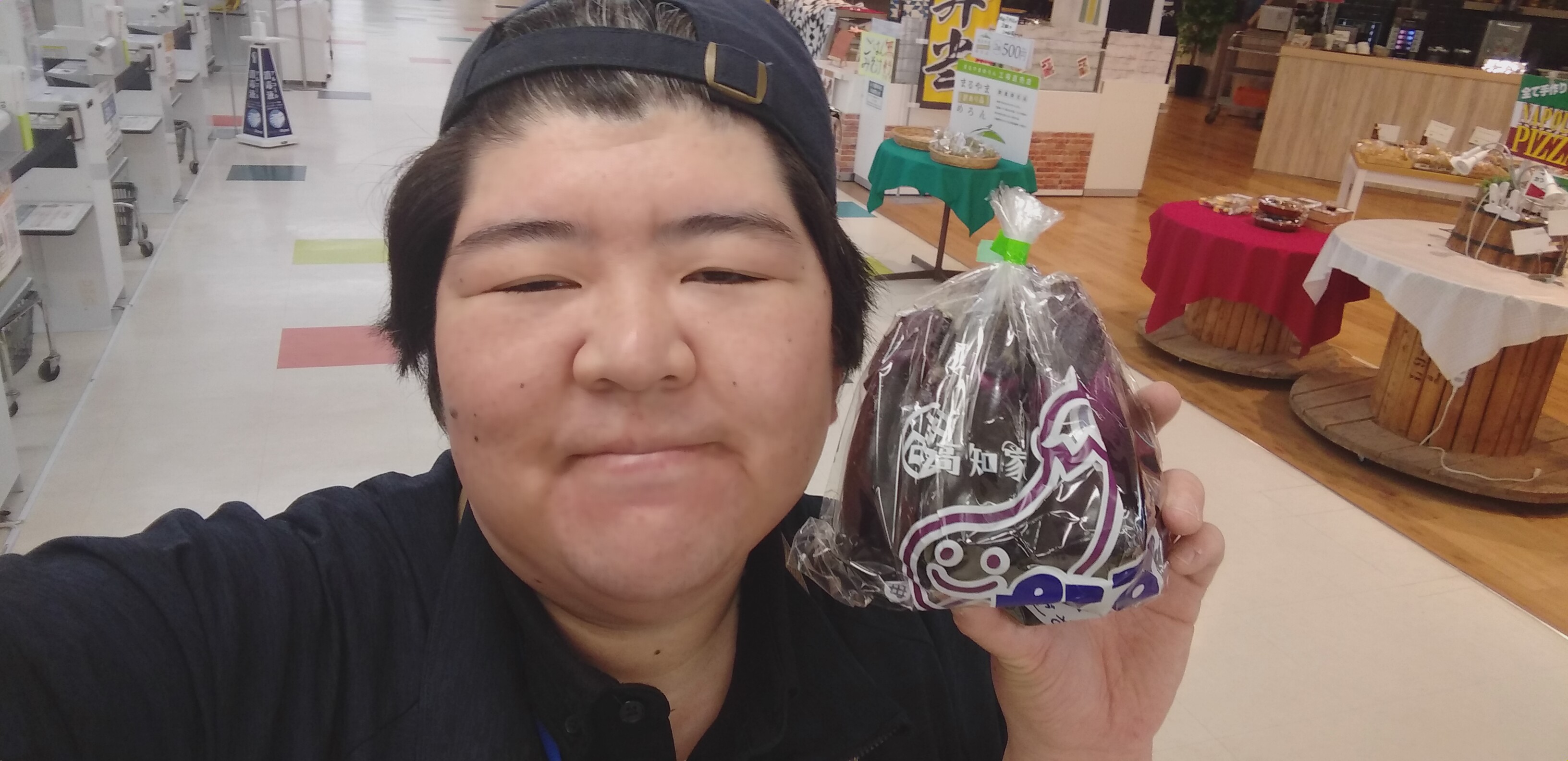 おはようございます。青果担当奥瀬です。本日のオススメはなすです。高知産のなす5本入1袋が199円です。漬物に、焼き物にいかがでしょうか。ぜひご利用くださいませ。皆様の御来店をお待ちしております。