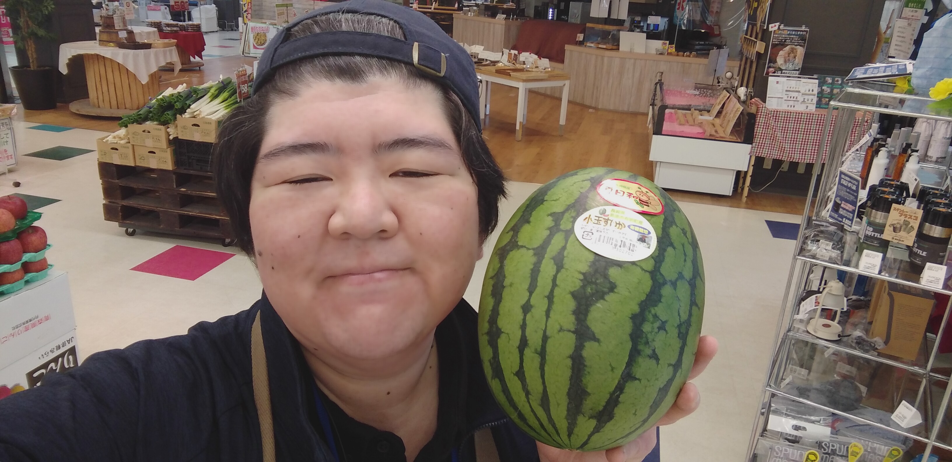 おはようございます。青果担当奥瀬です。本日は長崎直送の小玉すいかのご紹介です。有機栽培で、丹精込めて栽培した、シャリシャリ甘いすいかです。小玉なので冷蔵庫にも入りやすく、皮も薄くて食べやすいと思います。長崎産、横山さんの小玉すいか、1玉1380円です。ぜひご利用くださいませ。