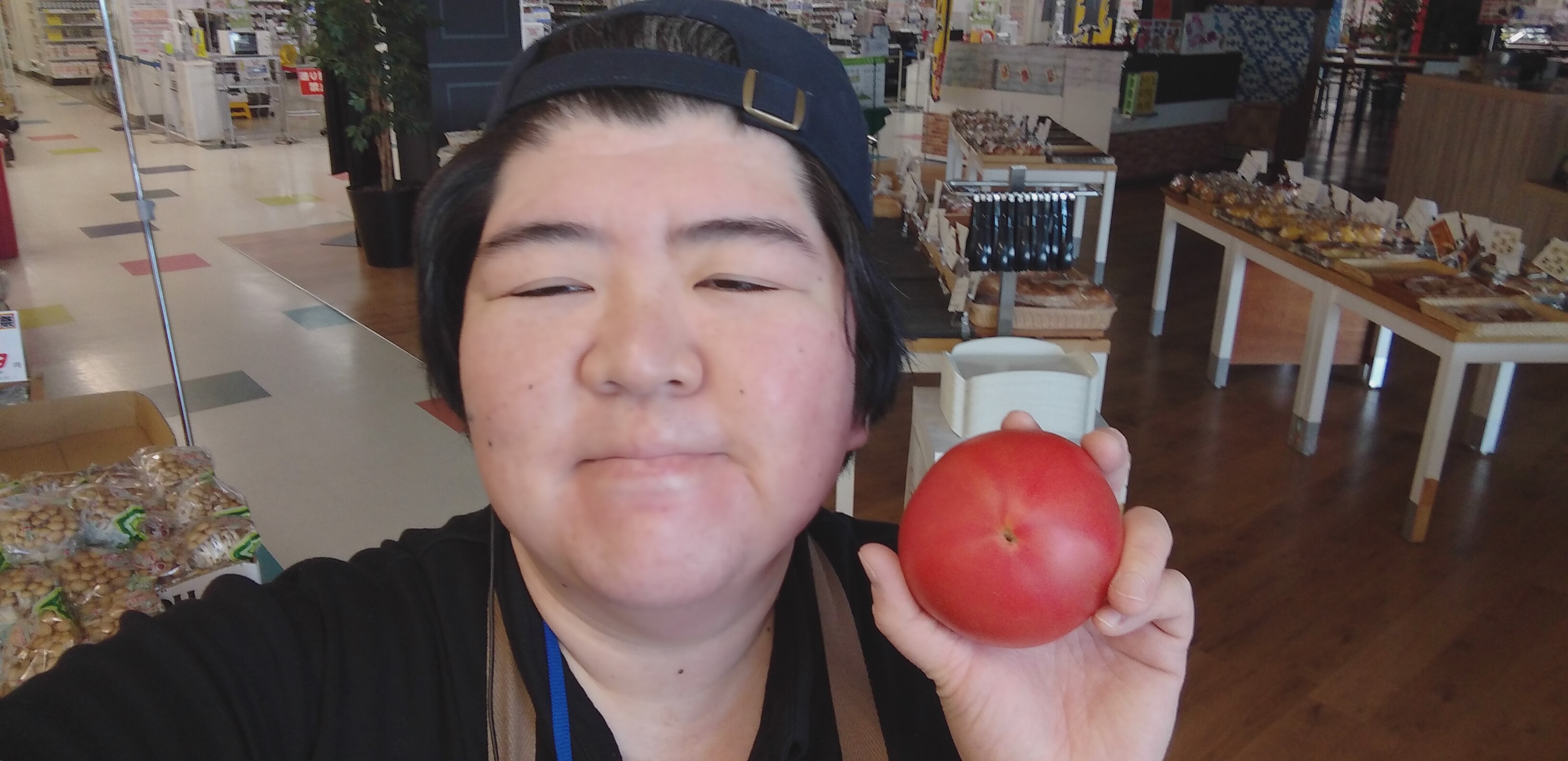 おはようございます。青果担当奥瀬です。本日のオススメは、美瑛産の大玉とまとです。1玉99円となっております。ぜひご利用くださいませ。