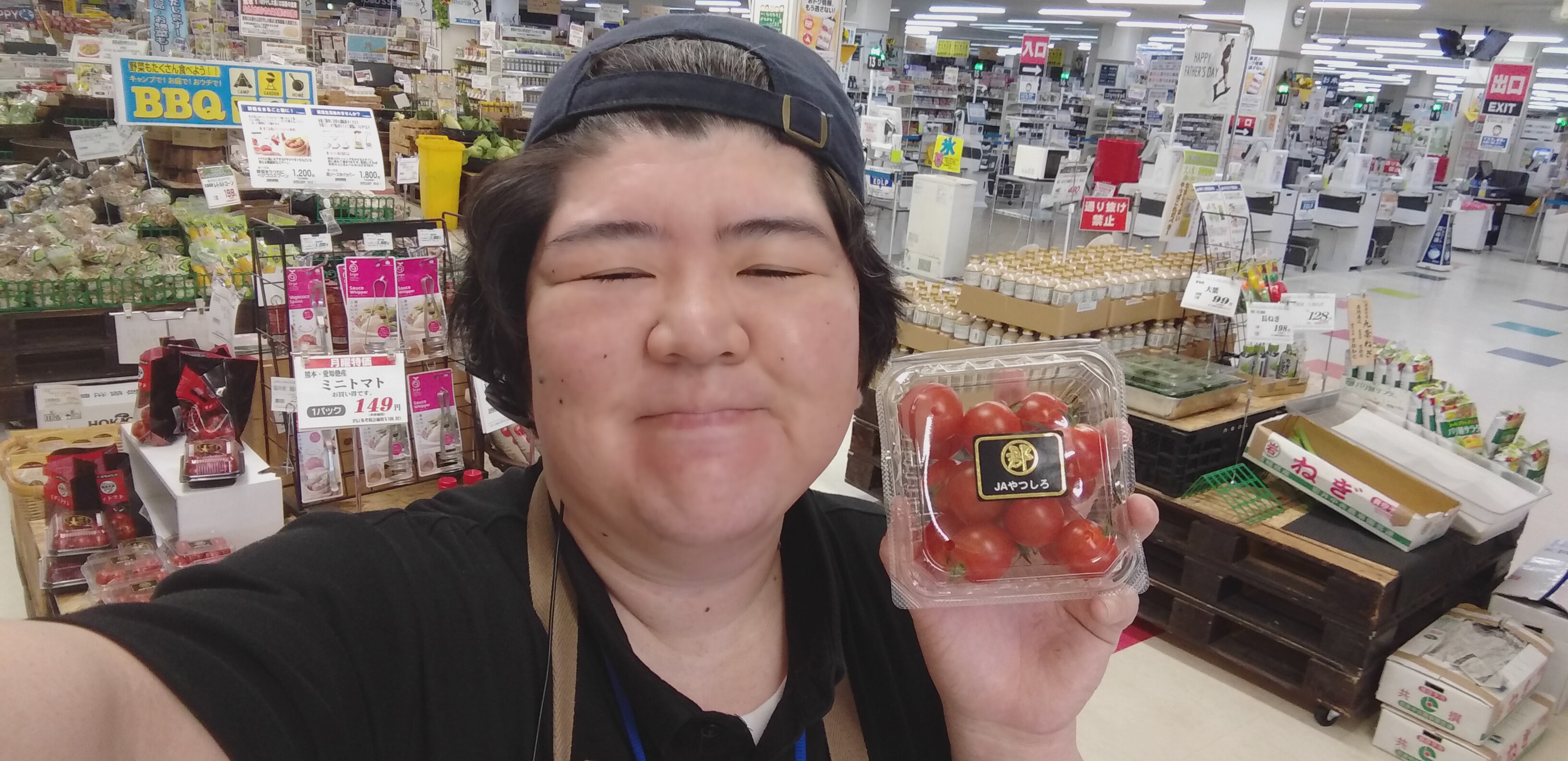 おはようございます。青果担当奥瀬です。本日の野菜コーナーのオススメは、熊本他産のミニトマトです。1パック149円と大変お買い得になっております。食卓の彩にいかがでしょうか?ぜひご利用くださいませ。