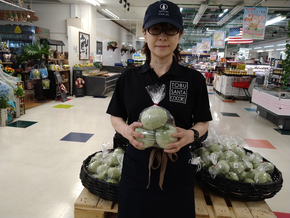 おはようございます。青果コーナーでは訓子府産の摘果メロン(漬物用)を販売しております。美味しいメロンを作る為に摘果したメロンは、漬物にすると美味しい漬物になります。1袋298円で販売しておりますので、ぜひ御賞味下さい。