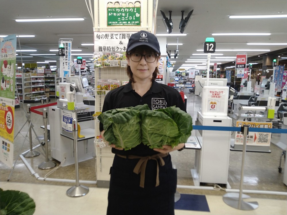 おはようございます。青果コーナーからは、北見産きゃべつ1玉¥129を紹介します。少し小ぶりですがお買い得特価となっております。煮たり焼いたり生でも美味しくいただけます。どうぞ御賞味ください。