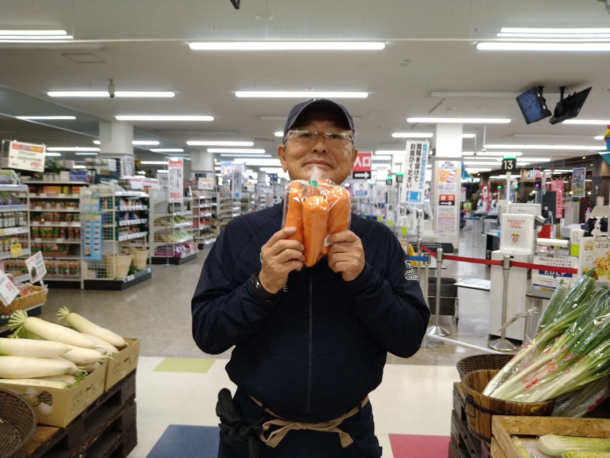 おはようございます。青果コーナーでは、千葉産人参(約1㎏)1袋 ¥258で販売しております。 煮たり焼いたり炒めたり、ジュースにも出来ます。万能な使い方ができる野菜なので御賞味ください。