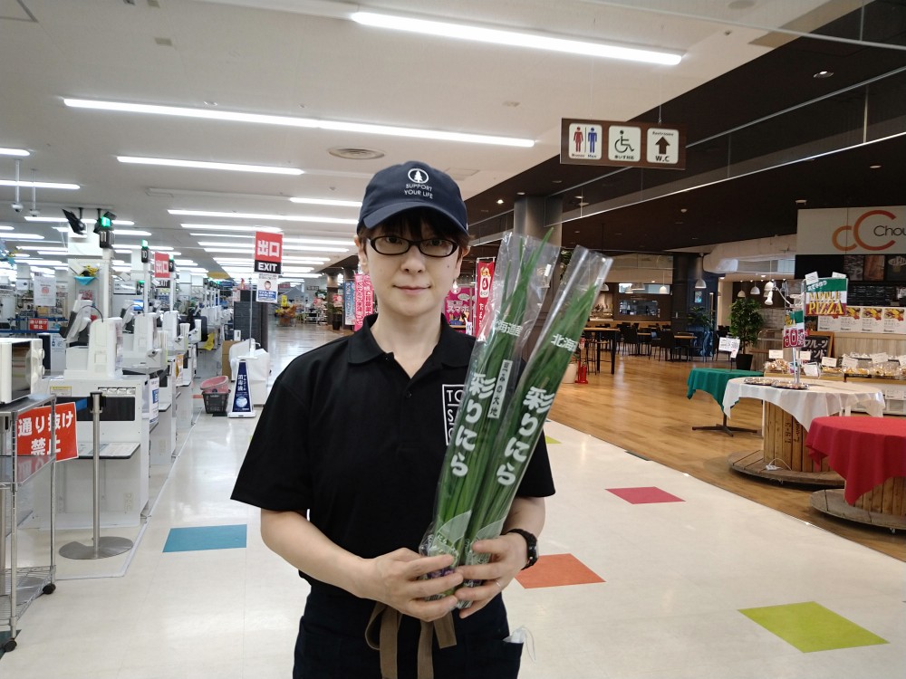 おはようございます。青果コーナーでは、北海道産のニラが1袋99円で販売しております。暑い日に体力をつけるのにいかがでしょうか?どうぞ御賞味ください。