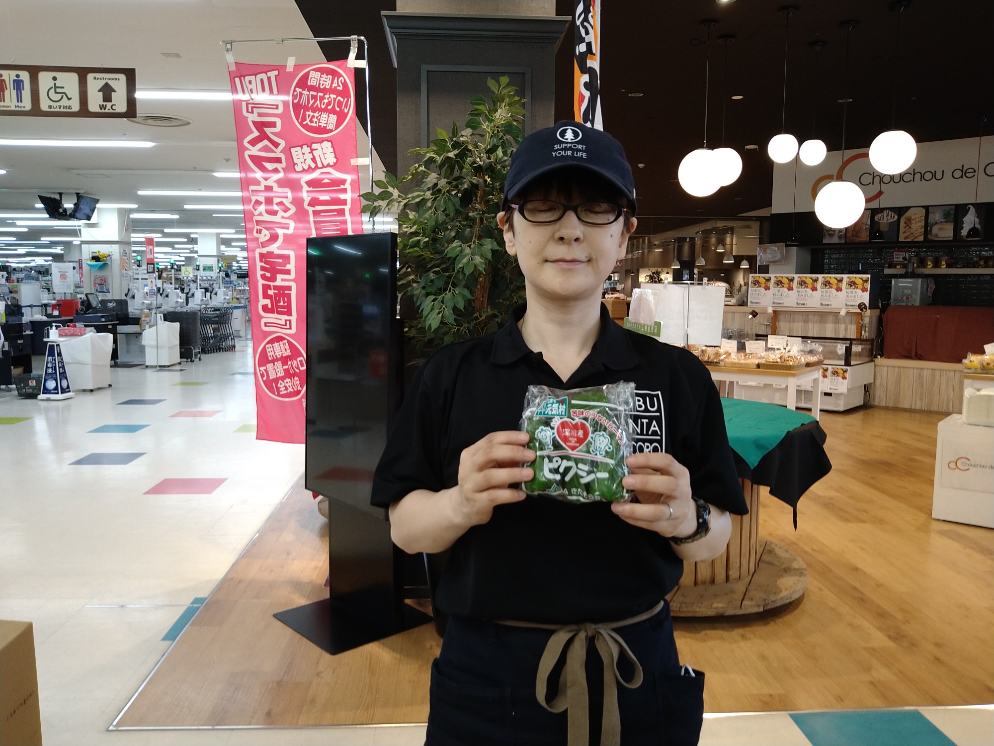 おはようございます。青果コーナーでは、北海道産ピーマン1袋¥99で販売しております。 火を通して、かつお節と醤油をかけたり、サラダにしたり、食べ方はいろいろあります。どうぞ御賞味ください。