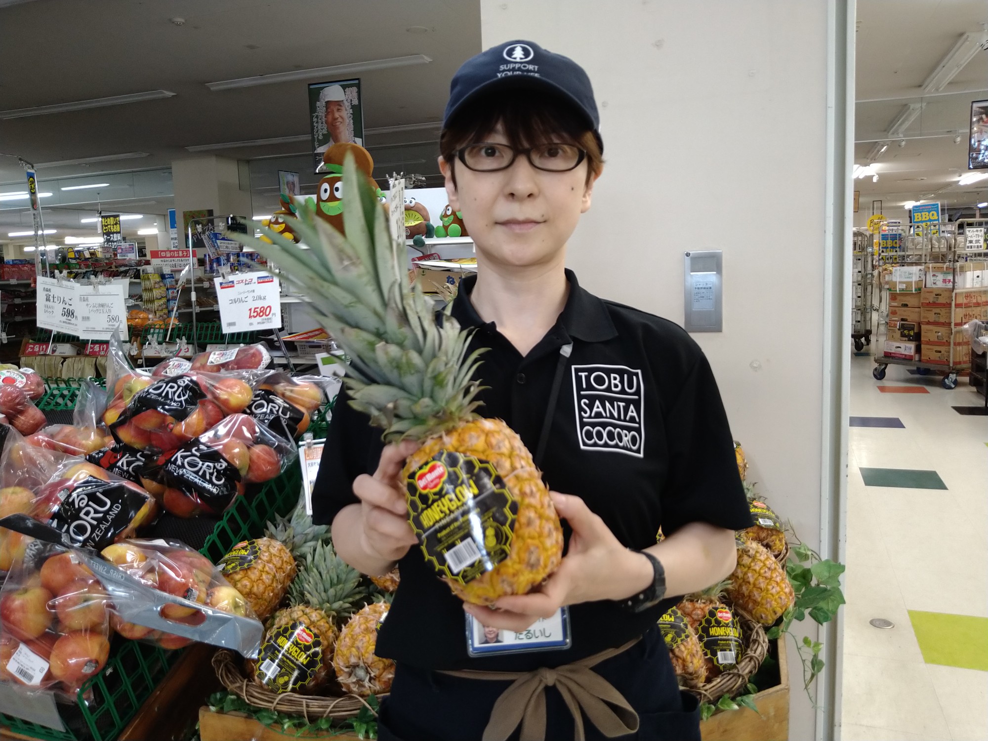 おはようございます。青果コーナーでは、フィリピン産ハニーグローパイン1玉798円で販売しております。甘みが強く酸味が少なく、ひと口食べると、甘みが直球で来て、果汁があふれます。どうぞ御賞味ください。