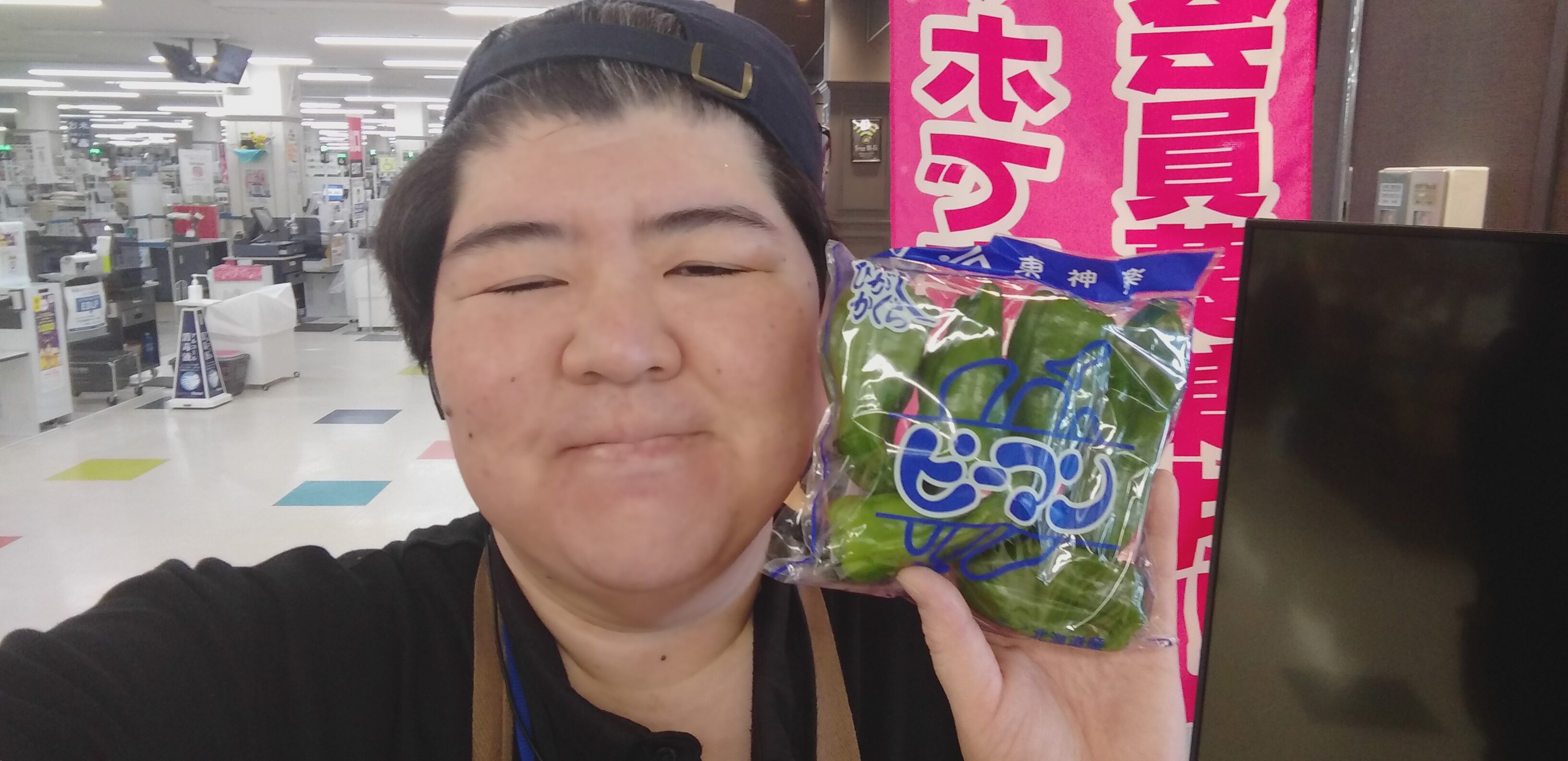 おはようございます。青果担当奥瀬です。本日のオススメはピーマンです。北海道産のピーマンが、1袋99円とお買い得です。炒め物、焼き物、揚げ物にいかがでしょうか。ぜひご利用くださいませ。