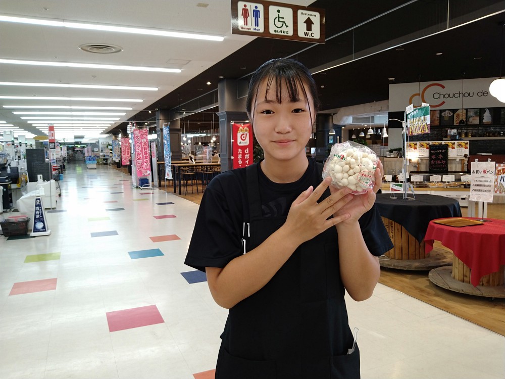おはようございます。青果コーナーでは、北海道産白いしめじブナピーが1袋¥77で販売しております。サラダに、料理のアクセントにどうぞお召し上がりください。
