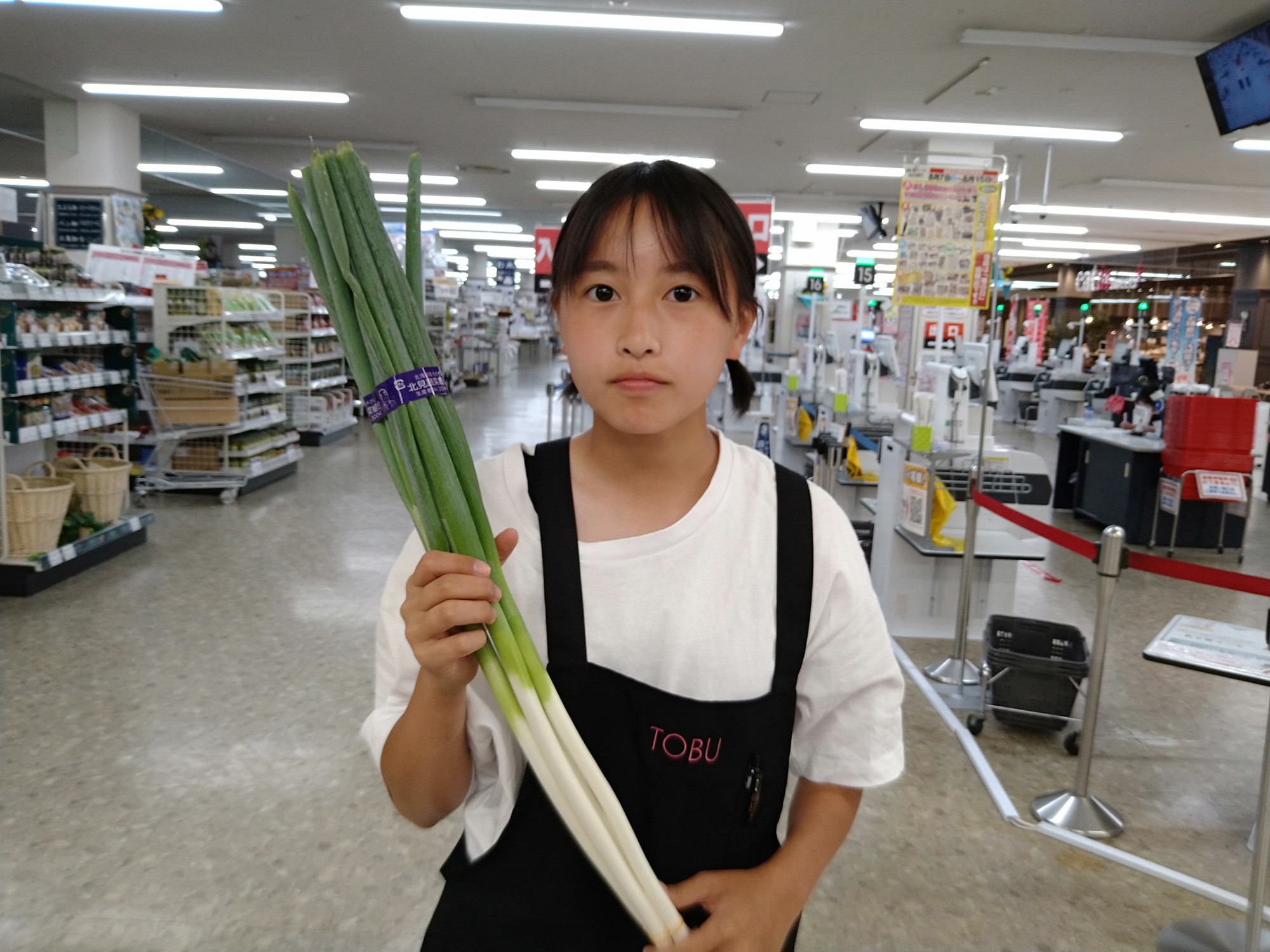 おはようございます。青果コーナーでは、北見産長ねぎ1束128円で販売しております。麺の薬味や、お好み焼きにどうぞ御賞味ください