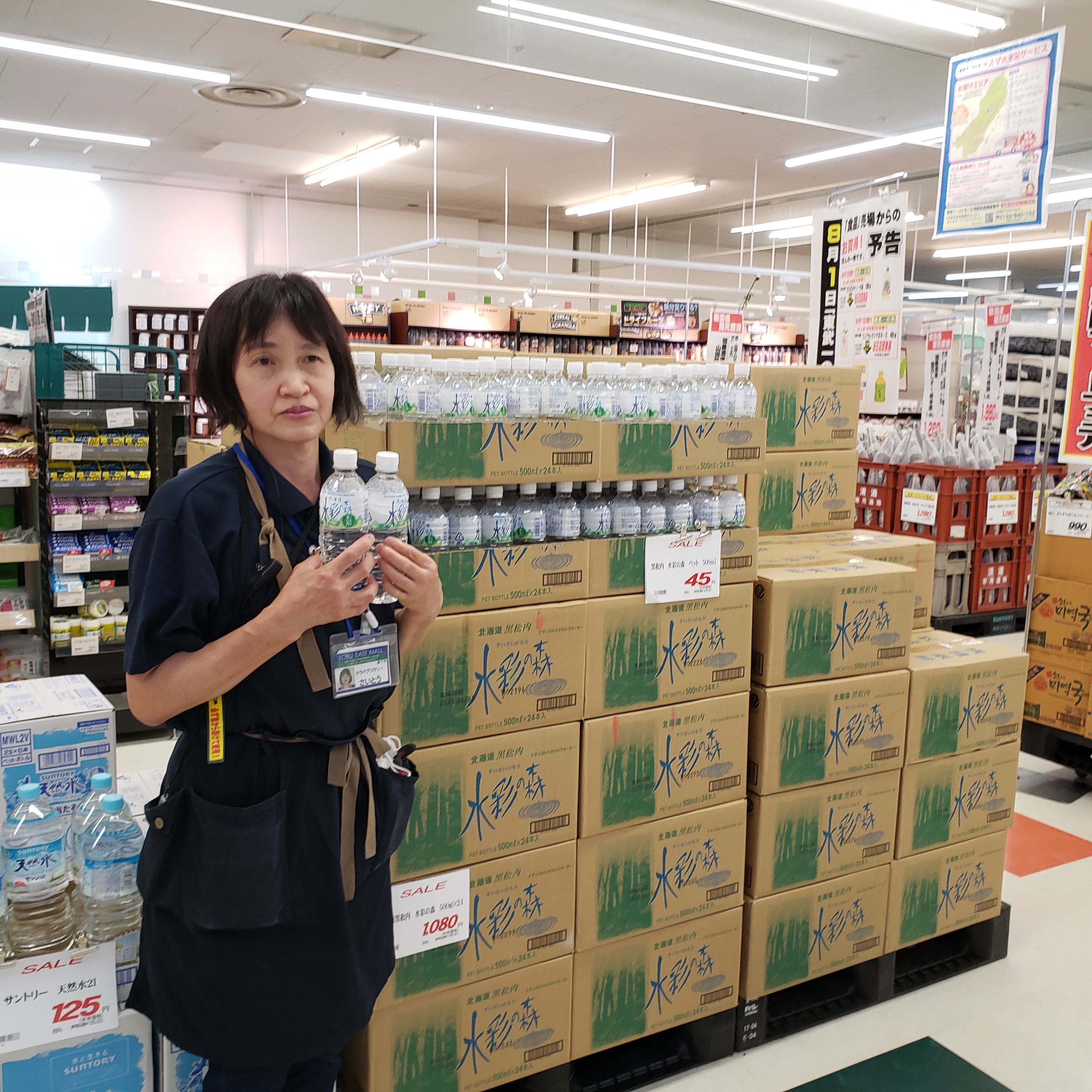 食品コーナーからは!お買い得です!北海道黒松内 水彩の森 天然アルカリ水です。 500ml入りで1本45円です。是非お買い求めくださいませ。