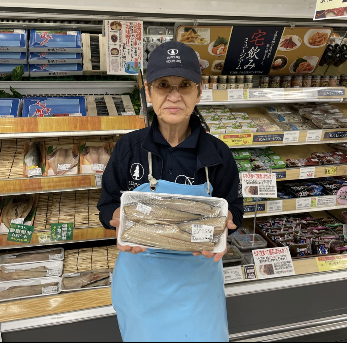 鮮魚コーナーからのおすすめです。本日はたこ頭がおすすめです。4枚498円(税抜き価格)となっております。