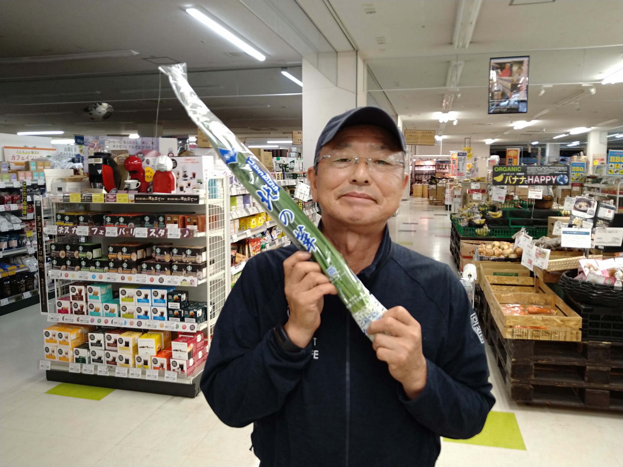 おはようございます。青果コーナーでは、北海道産にら1袋99円で販売しております。チヂミにしたり、玉子焼きに加えたり、どうぞ御賞味ください。