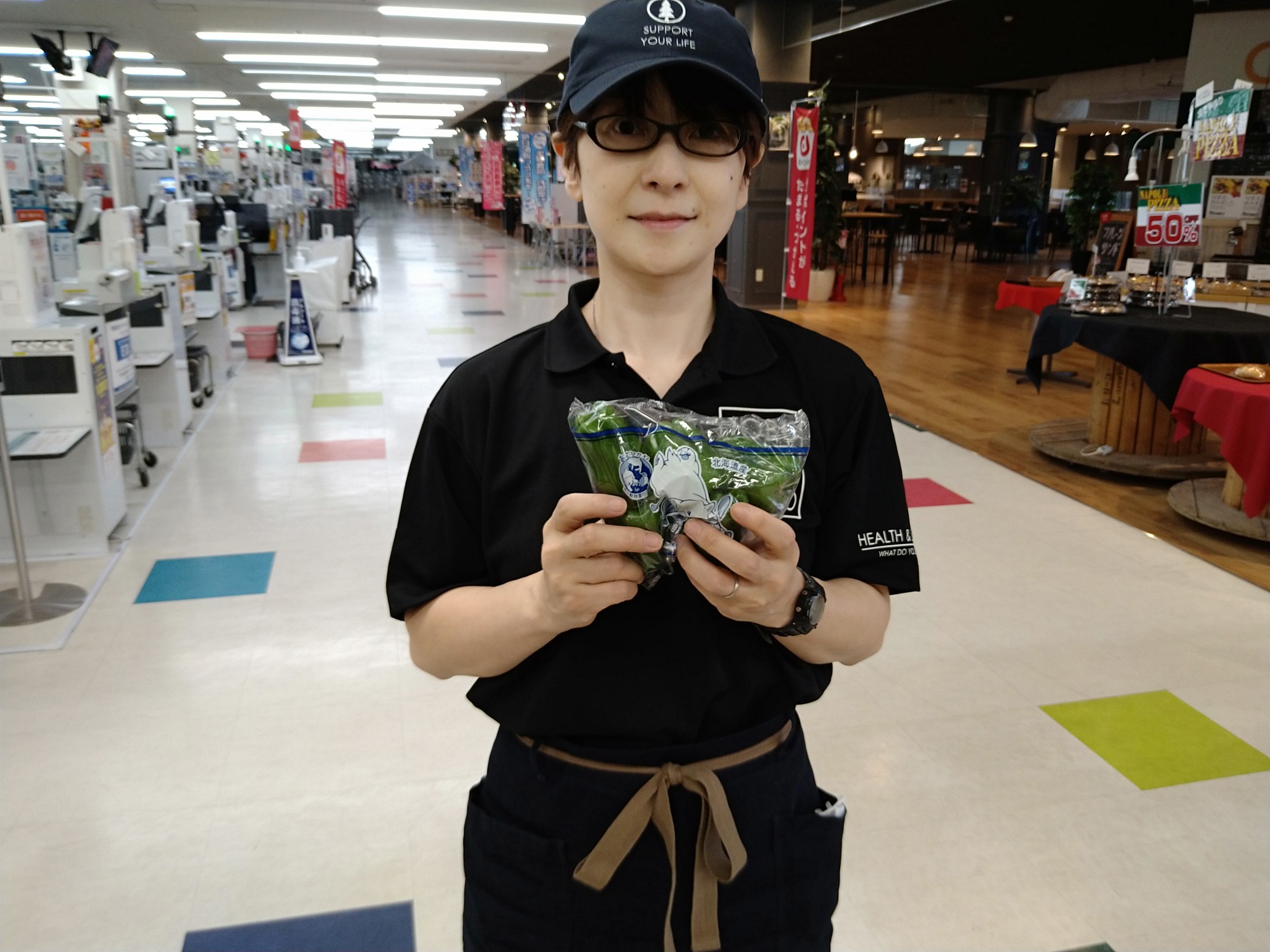 おはようございます。青果コーナーでは、北海道産ピーマン1袋88円で販売しております。肉詰めや、春雨と一緒にいためたりしてはいかがでしょうか?どうぞお召し上がりください。