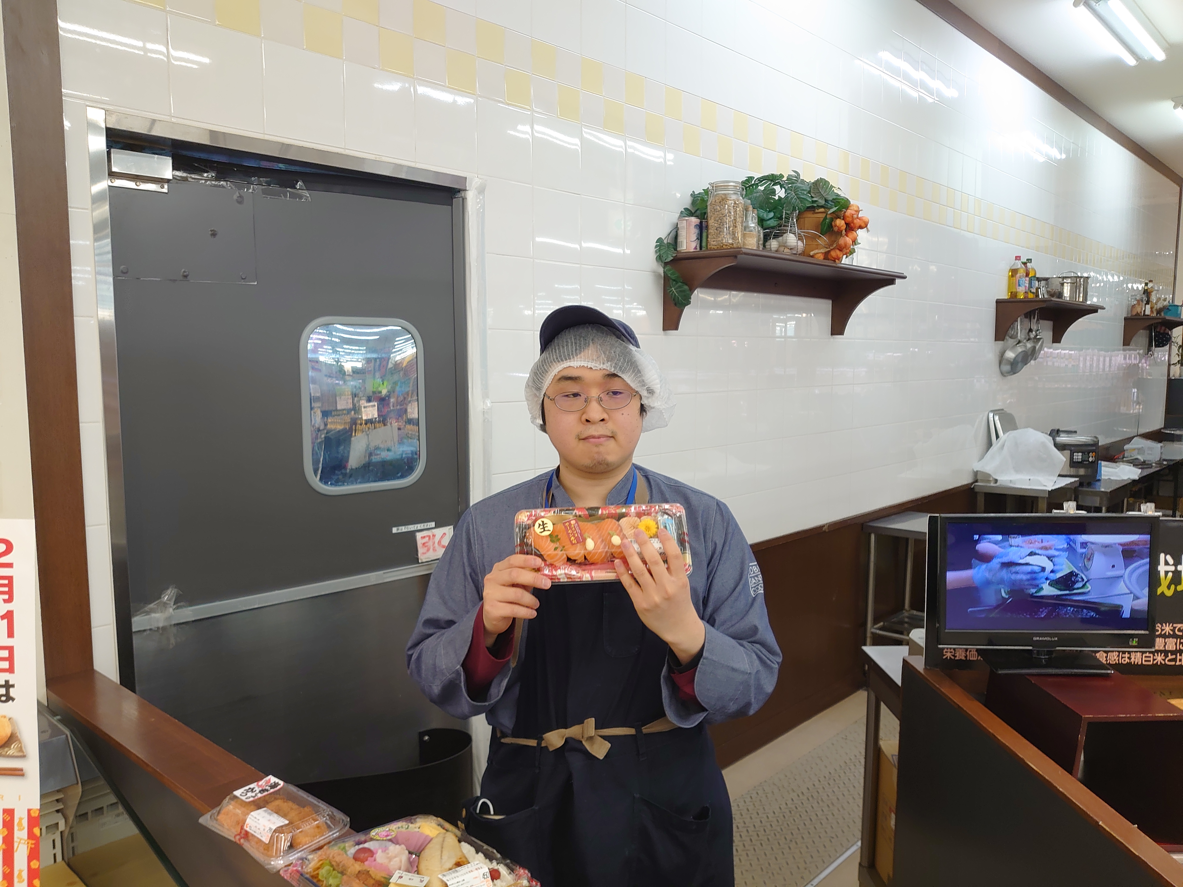 おはようございます。惣菜担当小川です。シャリの上にガリをのせてサーモンをシャリの上にのせてわさびとマヨネーズをトッピング。
