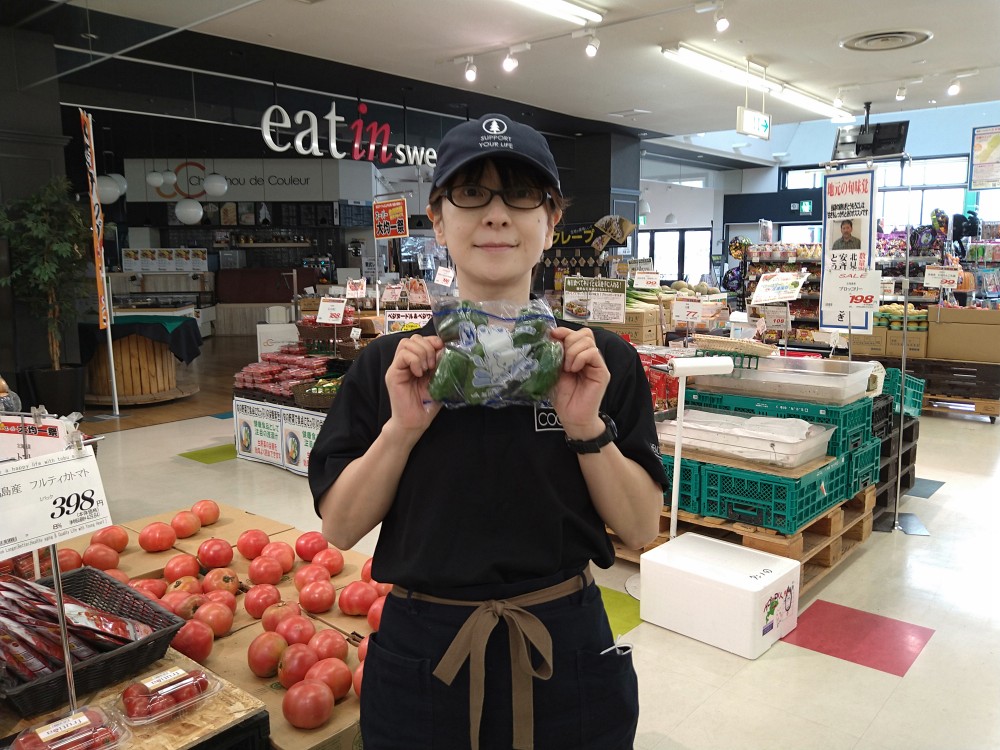 おはようございます。青果コーナーでは、北海道産ピーマン1袋¥99で販売しております。肉詰めや野菜炒め等いかがでしょうか?どうぞ御賞味ください。