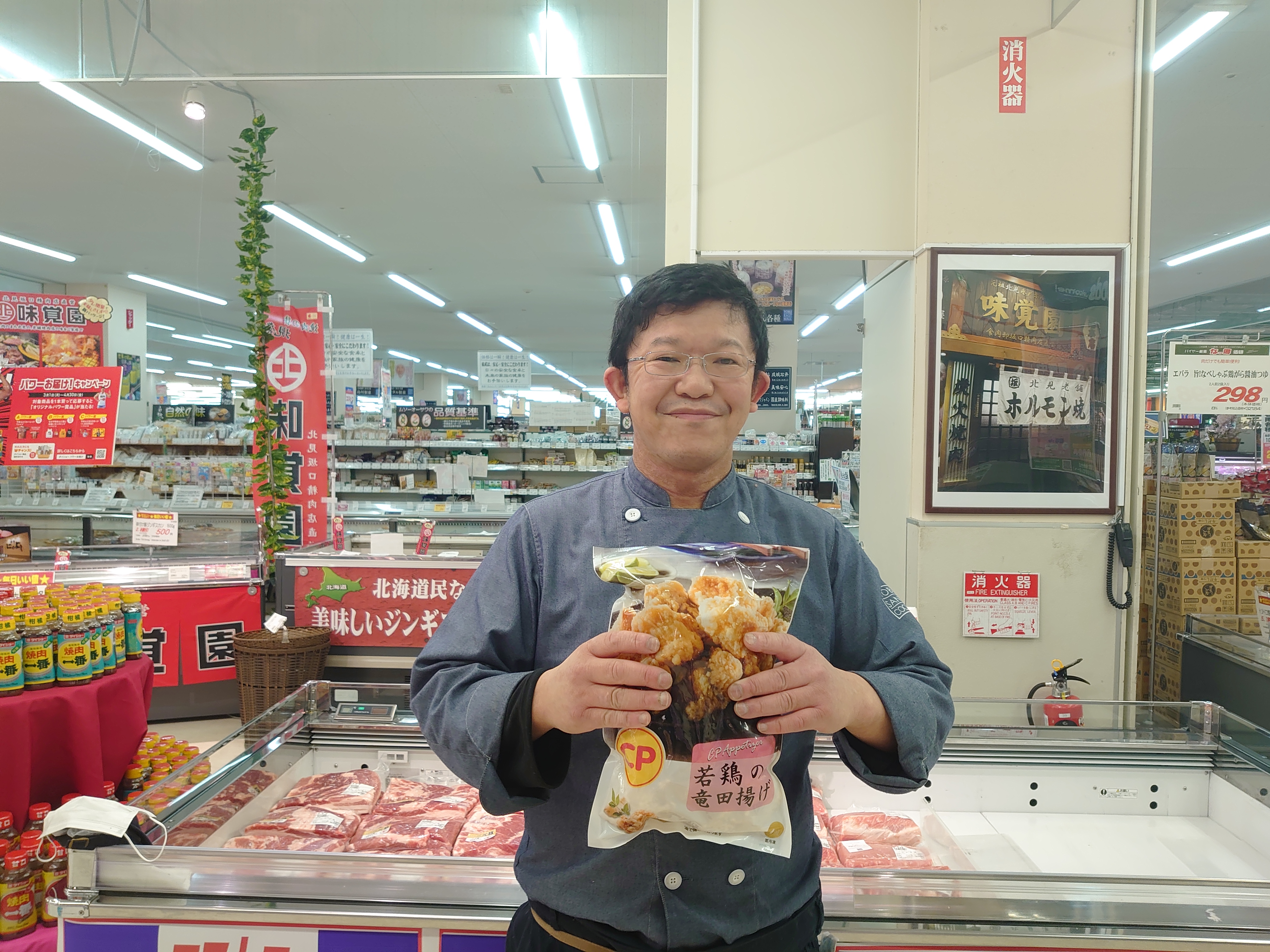 おはようございます。ミート担当近藤です。あと一品欲しいときや、お弁当のおかずに便利な「鶏竜田揚げ」!柔らかい鶏むね肉を醤油ベースで味付けし、カリカリの衣で揚げた一品で、レンジで温めればすぐに完成!お食事のメインの一品となる食べ応えがあります。