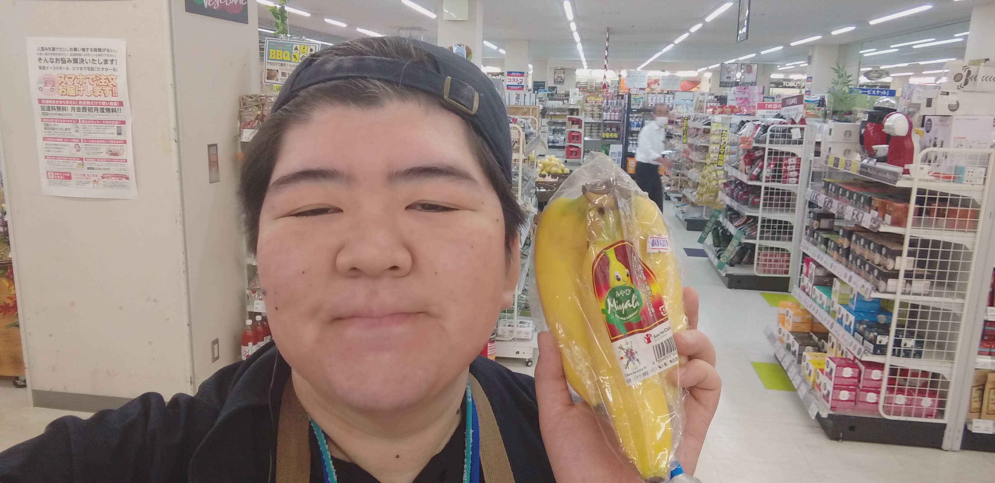 おはようございます。青果担当奥瀬です。本日の青果コーナーからのオススメは、フィリピン産のみやびバナナです。本日は月曜特価で1袋100円です。ぜひご利用くださいませ。