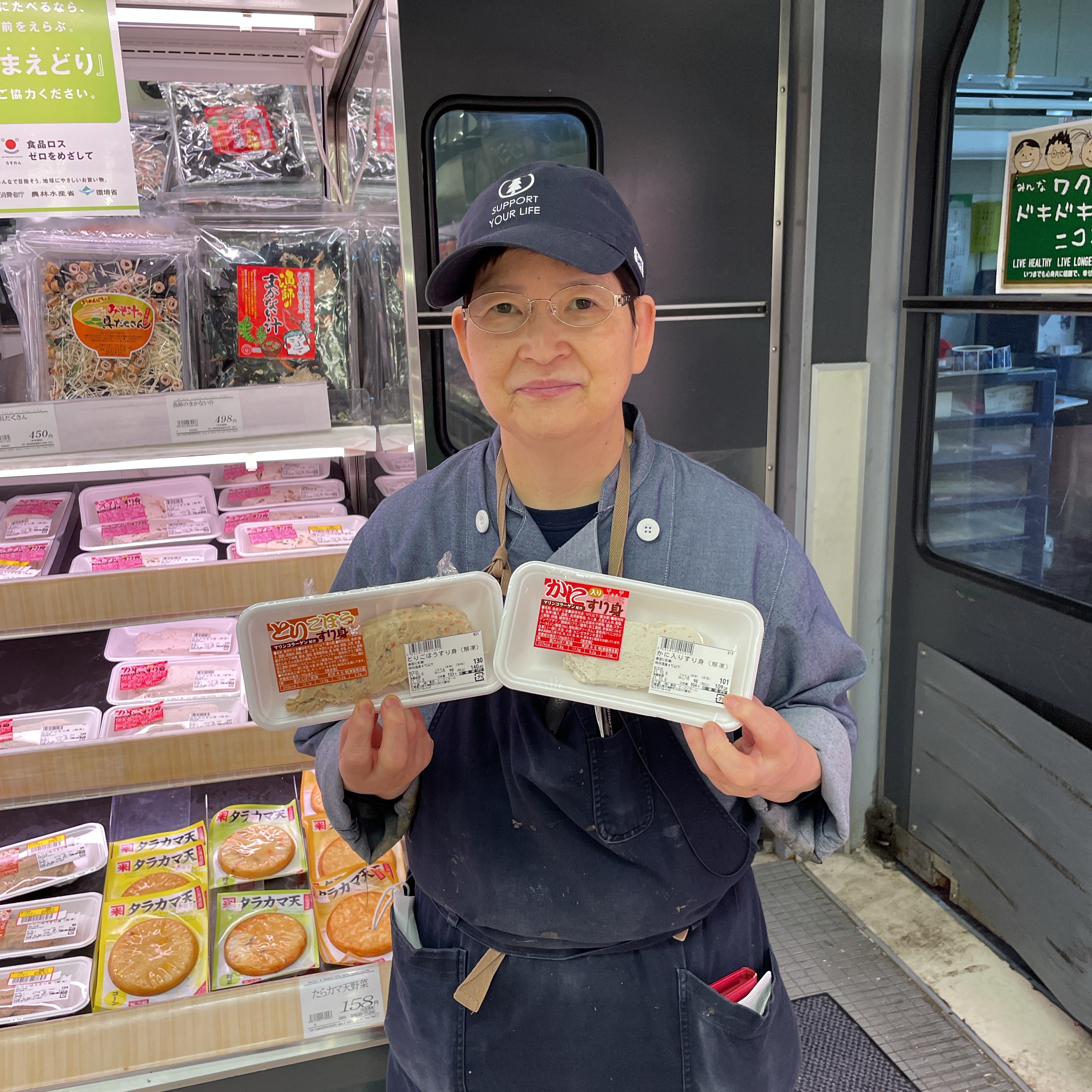 本日の鮮魚コーナーからのおすすめです。かに・とりごぼうすり身100g当たり98円となっております。今日は寒いのので鍋の具材としていかがでしょうか。是非ご来店おまちしております。