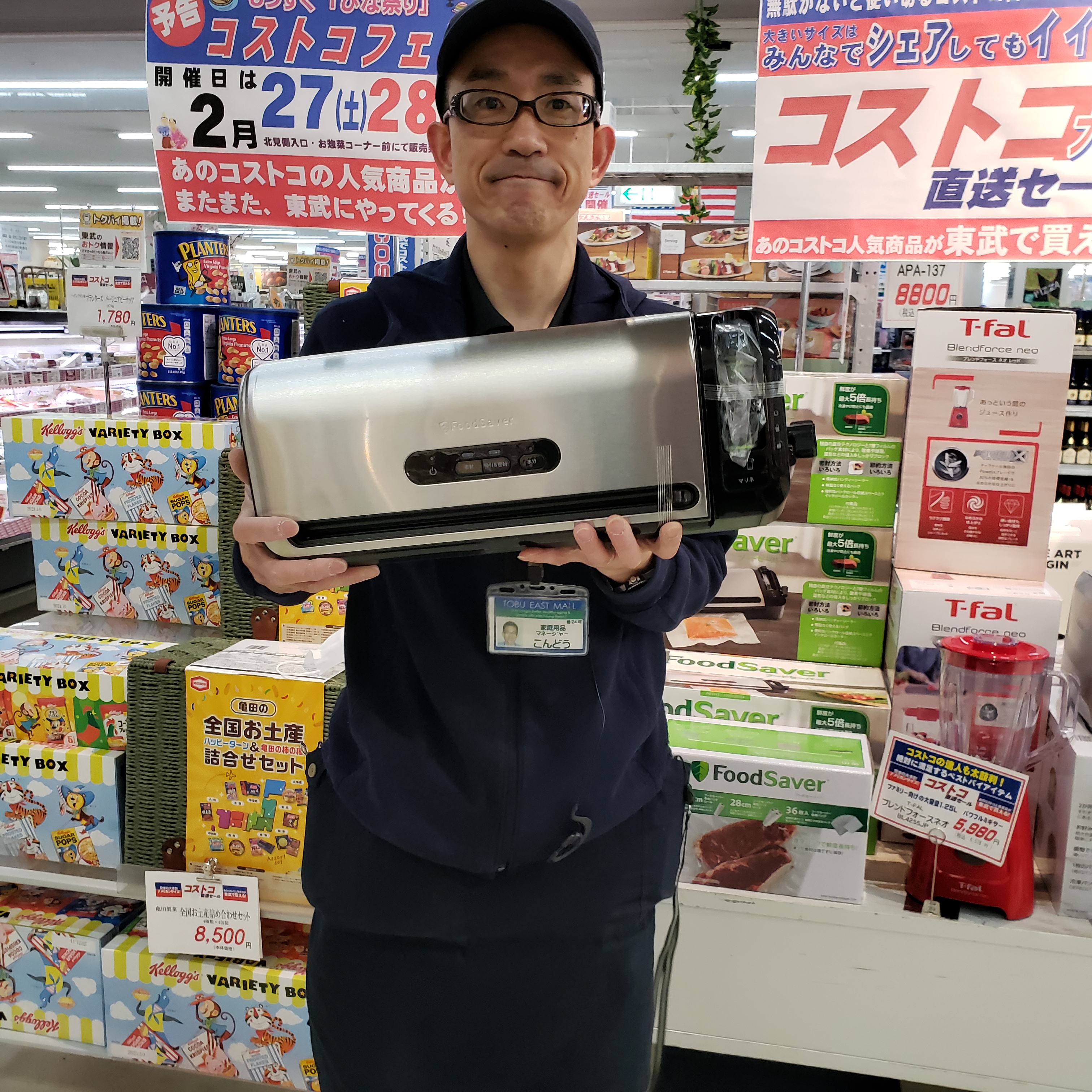 家電コーナーからは!本日コストコセール開催、アメリカで大人気のフードセイバー フードセイバー真空パック機です。便利なパックロール収納スペースとクイックロールカッター付き、価格は14800円です。是非お買い求めくださいませ。