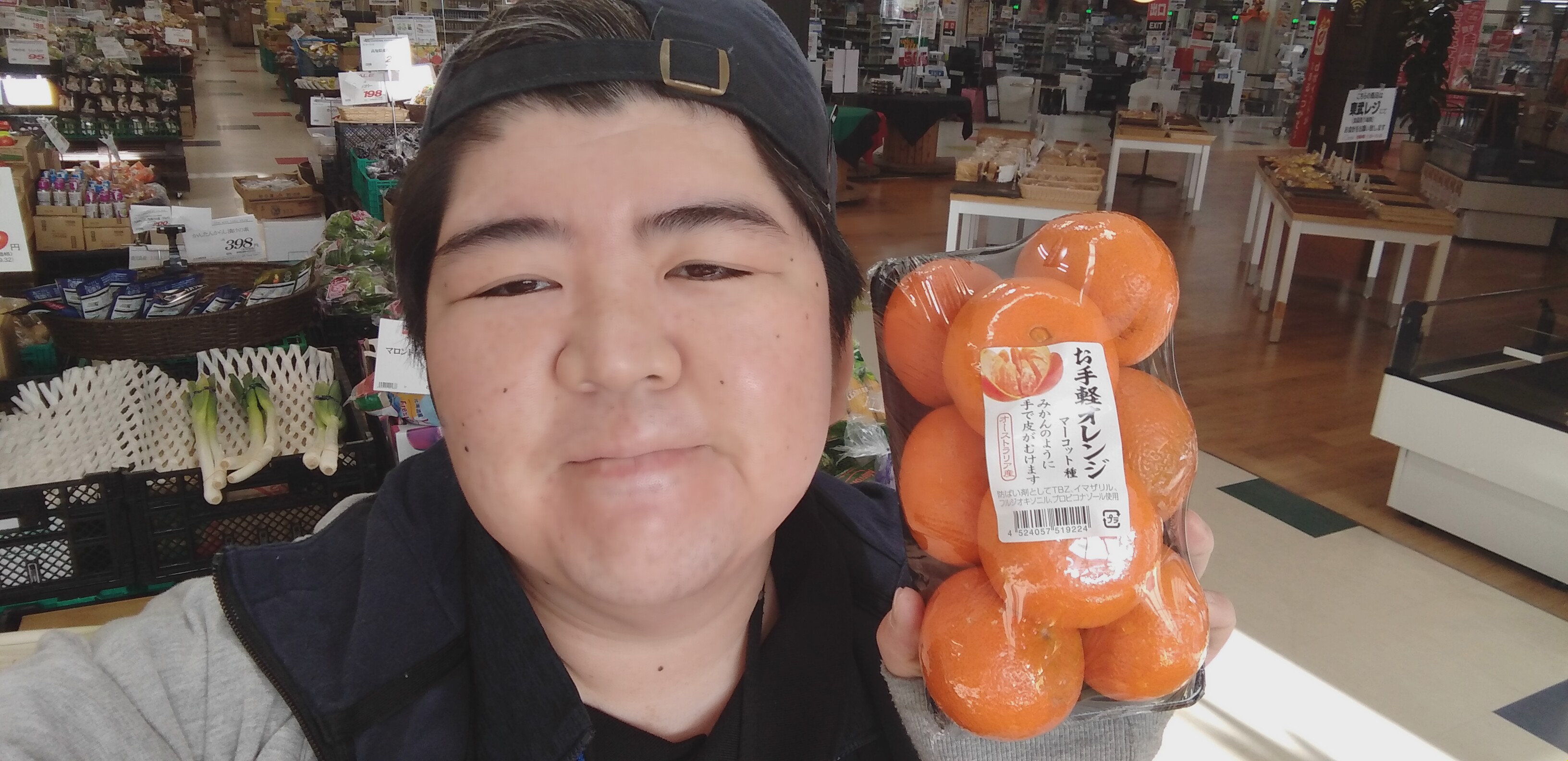 おはようございます。青果担当奥瀬です。本日の青果コーナーからのオススメは、オーストラリア産のマーコットオレンジです。手で皮が剥けちゃうお手軽オレンジ。1パック398円です。ぜひご利用くださいませ。
