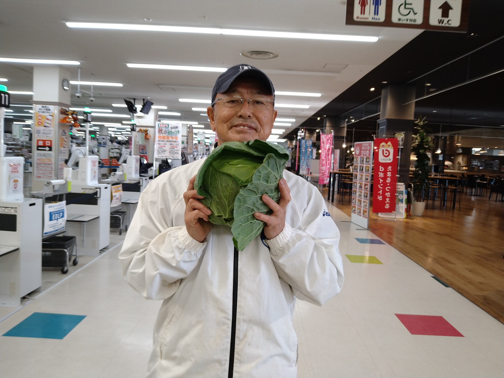 おはようございます。青果コーナーでは、北海道産きゃべつ1玉¥99で販売しております。きゃべつを使った鍋やお好み焼き、ロールキャベツなど色々とお使い頂けます。どうぞ御賞味ください。