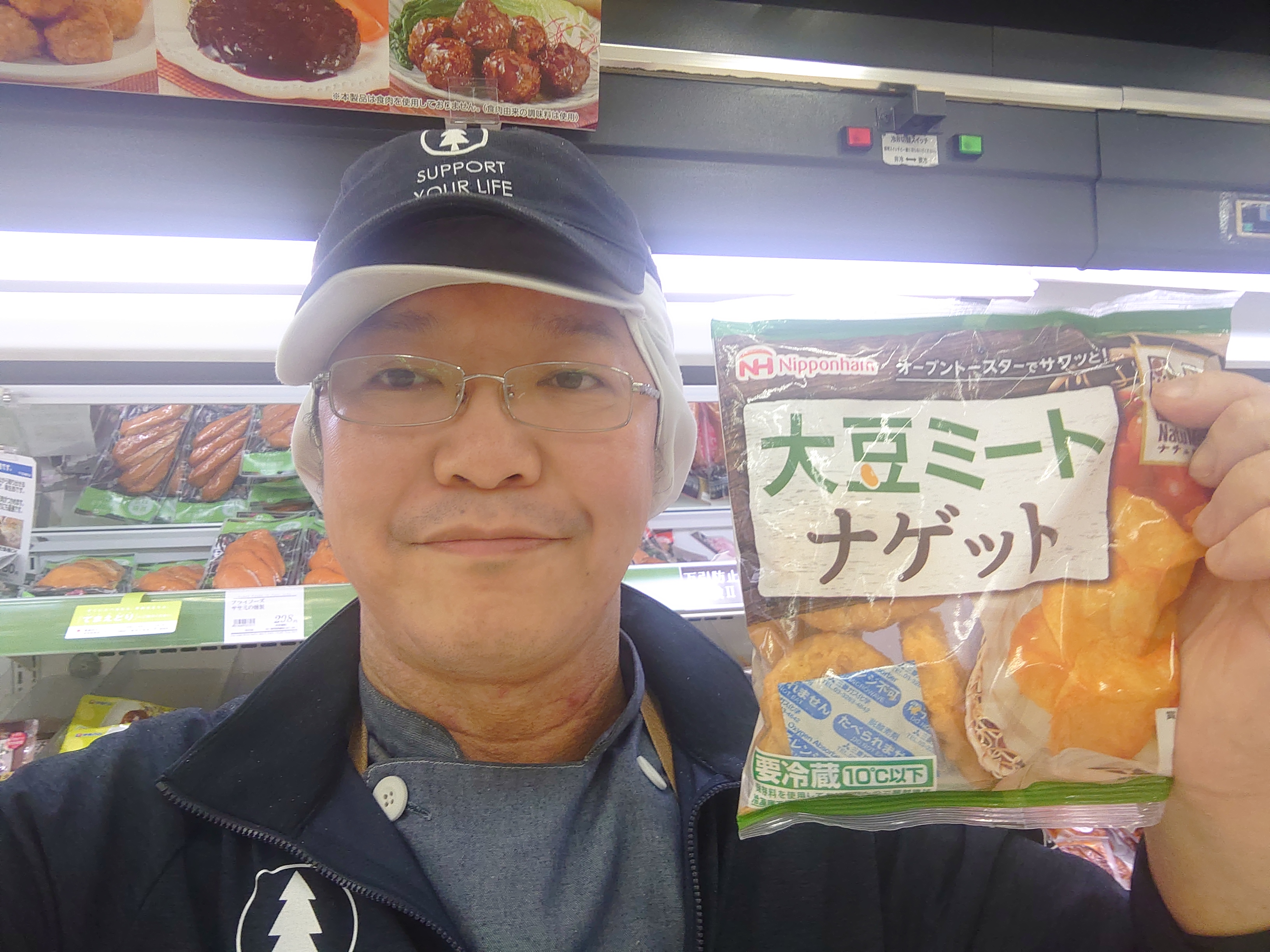 おはようございます。ミート担当近藤です。大豆ミートを使用したナゲットです。お肉は使用していないのに、チキンナゲットのような食感が出るように工夫しています。オーブントースターでサクッとした食感が楽しめます。