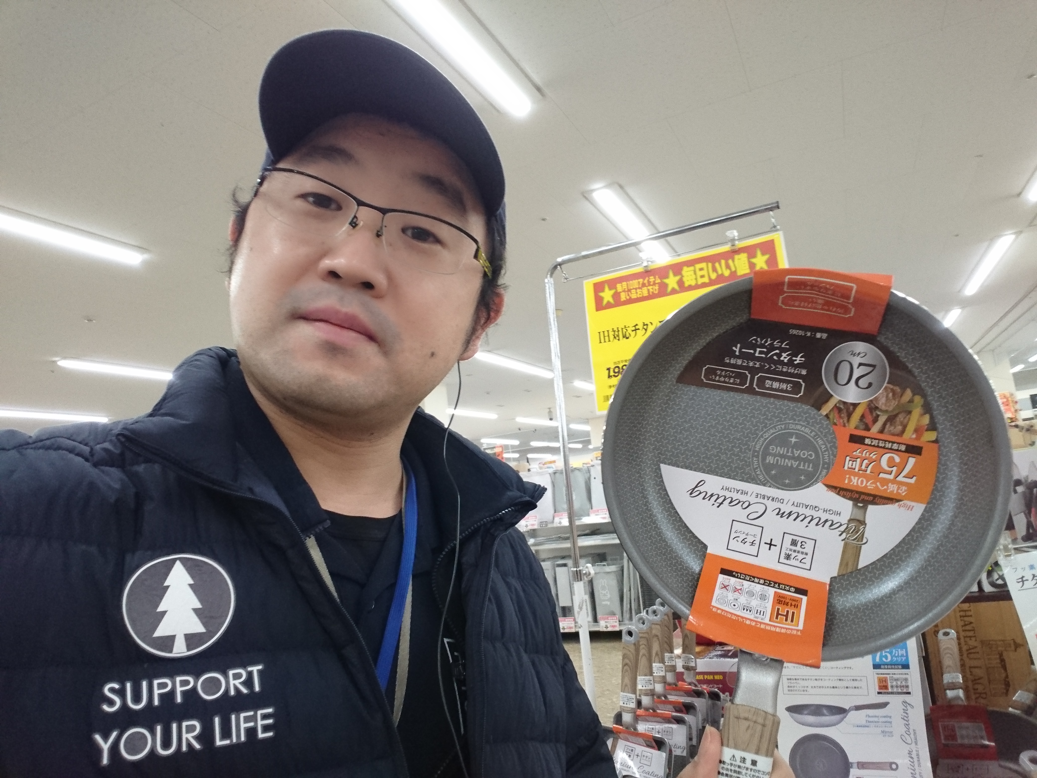 日用品コーナーからはチタンコートフライパン!耐久性が高い3層チタンコーティングで長持ち仕様!