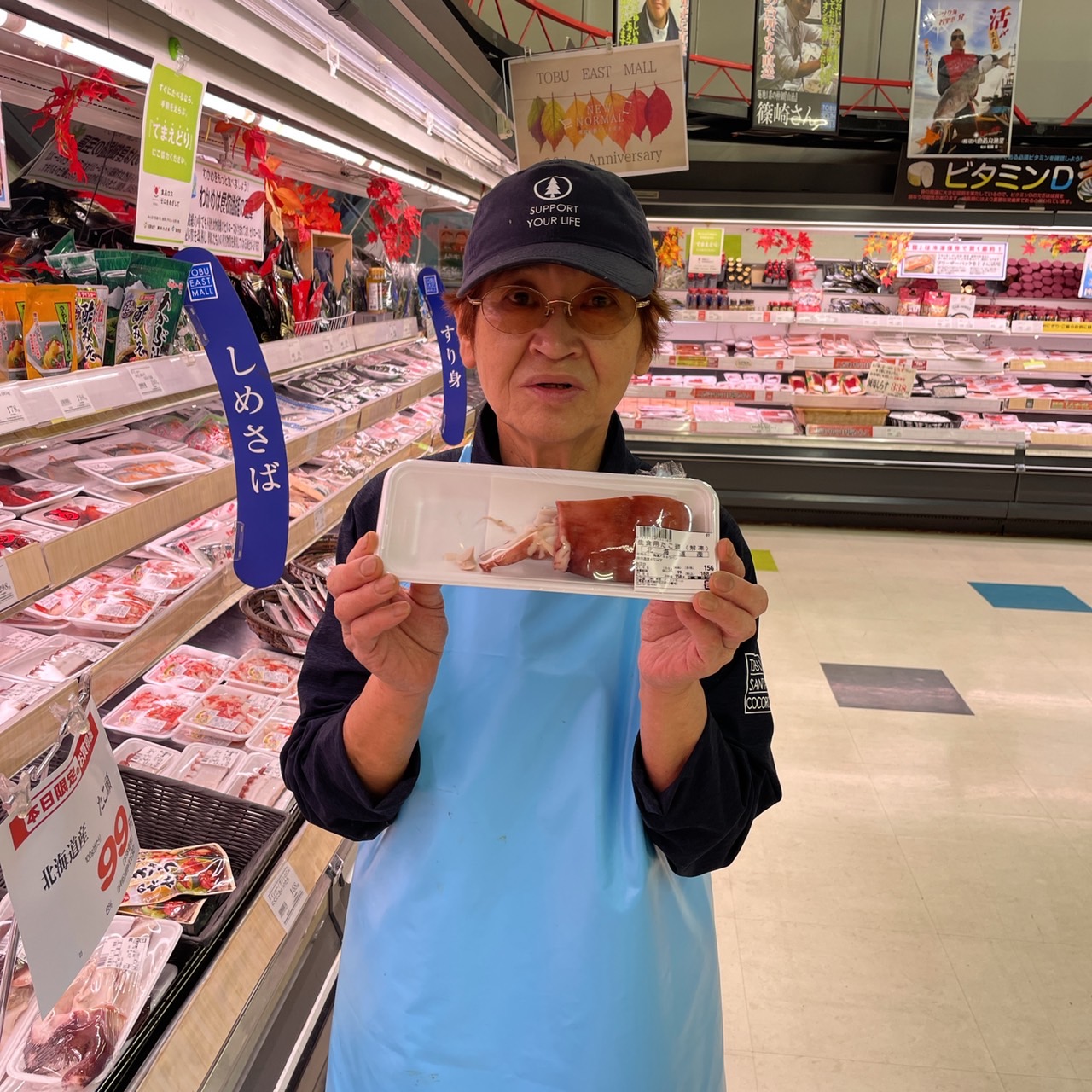 本日の鮮魚コーナーからのおすすめです。 タコ頭が100g当たり100円(税抜)となっております。是非ご来店ご利用お待ちしております