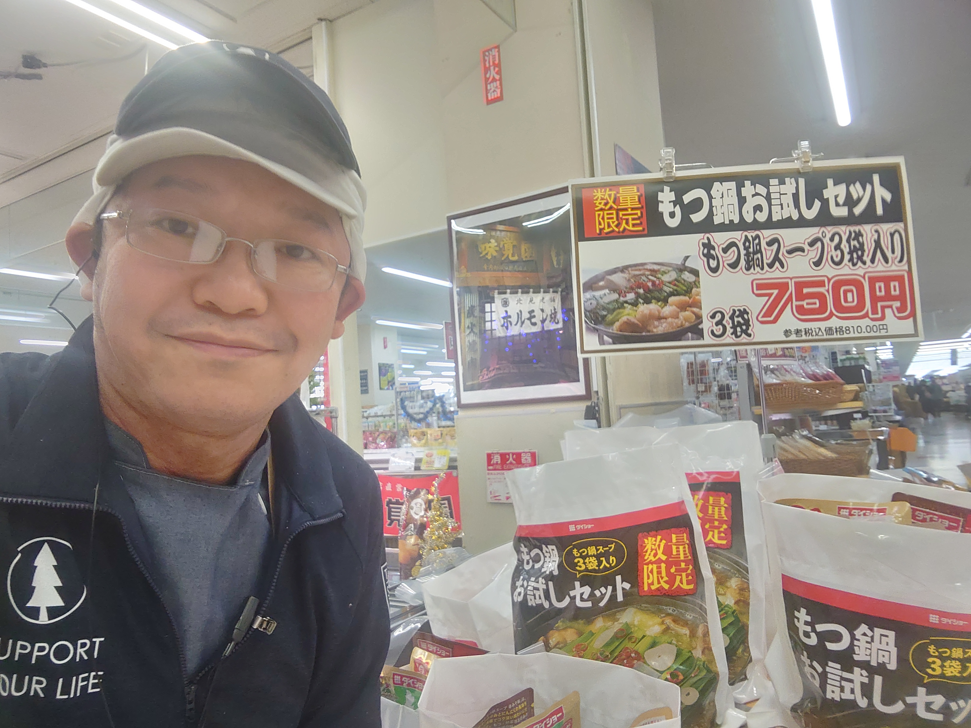 おはようございます。ミート担当近藤です。今、鍋シーズン中です。もつ鍋食べて体を温めては如何でしょうか。醤油味、味噌味、辛味噌味の三種類あります。1セット・750円(本体価格)、810円(税込)です。数量限定ですのでお早めに。
