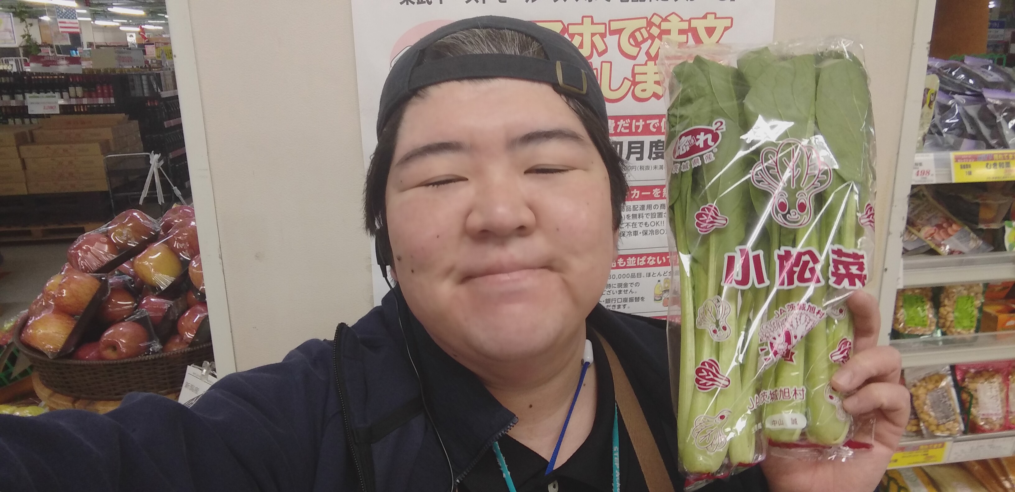 おはようございます。青果担当奥瀬です。今日と明日は茨城直送セールを開催します。茨城水戸市場から新鮮な野菜や果物をトラックで直送。新鮮でお買い得な商品を多数取り揃えております。本日のオススメは、茨城産の小松菜です。1袋99円とお買い得です。是非ご利用くださいませ。皆様のお越しをお待ちしております!