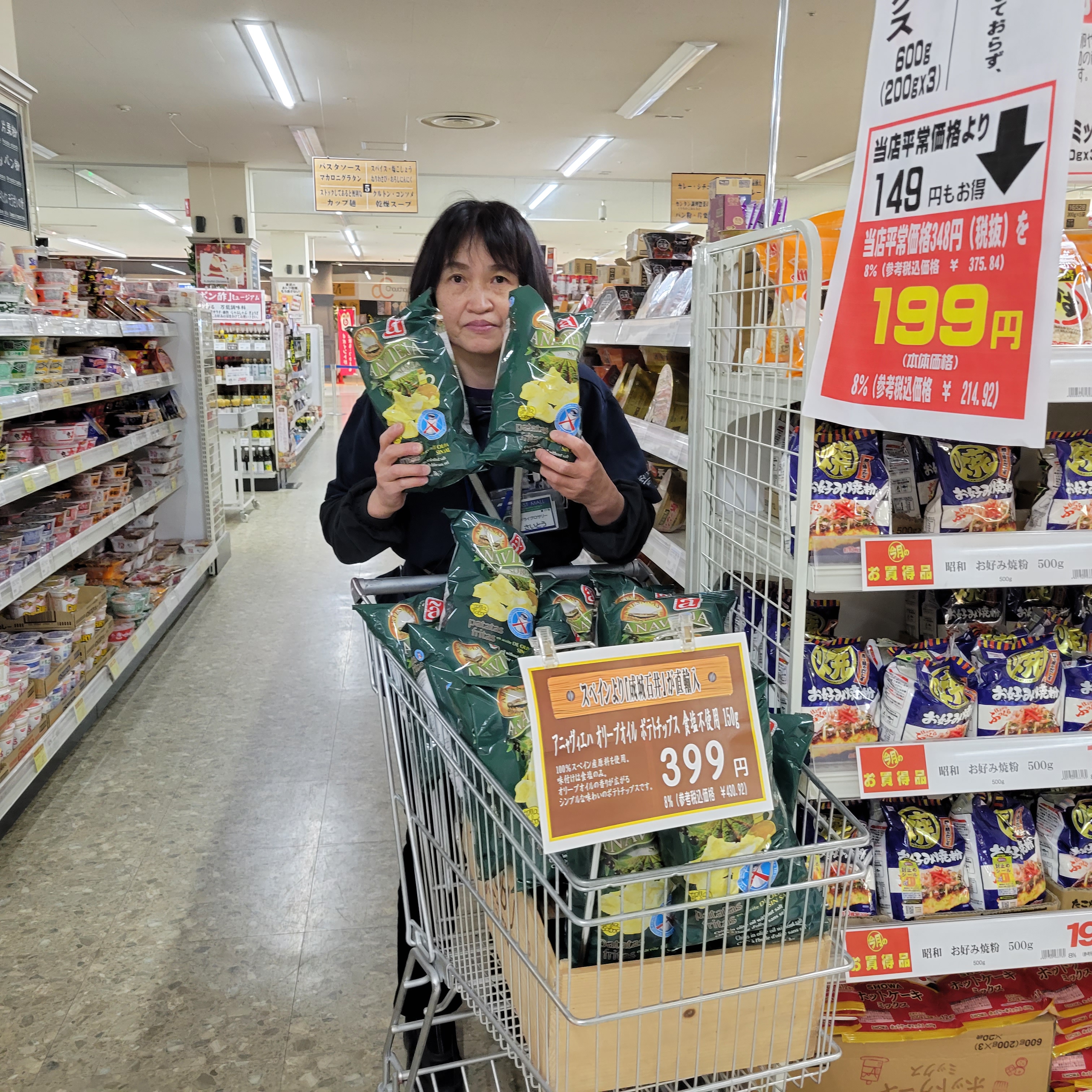 食品コーナーからは、人気の成城石井からスペインから直輸入!アニャヴィエハ オリーブオイル ポテトチップスです。食塩不使用のオリーブオイルの香りが広がるシンプルな味わいです。価格は150g入りで399円です。是非お買い求めくださいませ。