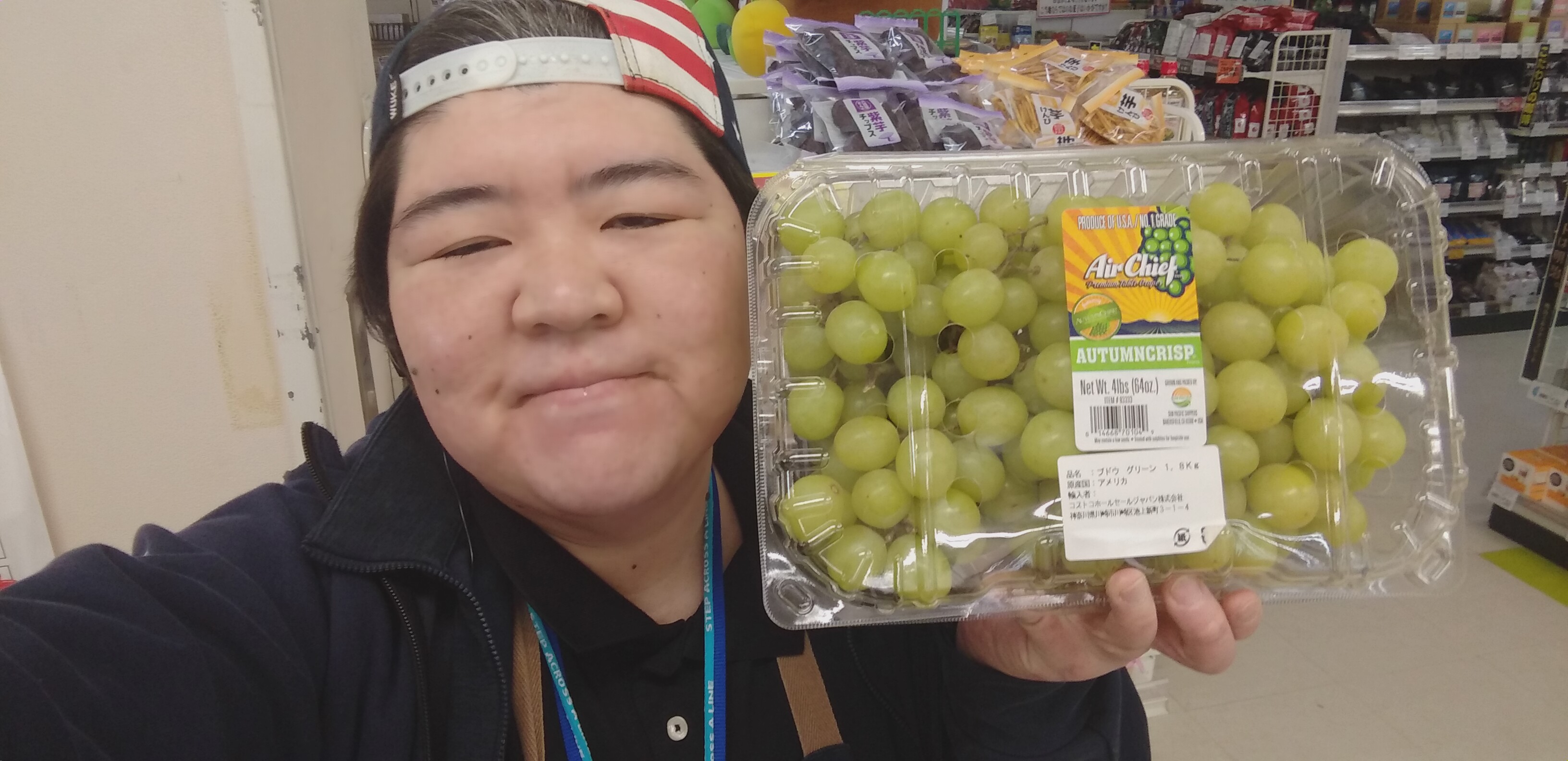 おはようございます。青果担当奥瀬です。本日よりコストコ直送セール開催です。青果コーナーからのオススメは、アメリカ産のグリーンぶどう。1.8kg入って1980円です。たっぷり食べられるコストコサイズ。是非ご利用くださいませ。他にもお買い得商品を取り揃えております。皆様のお越しをお待ちしております!