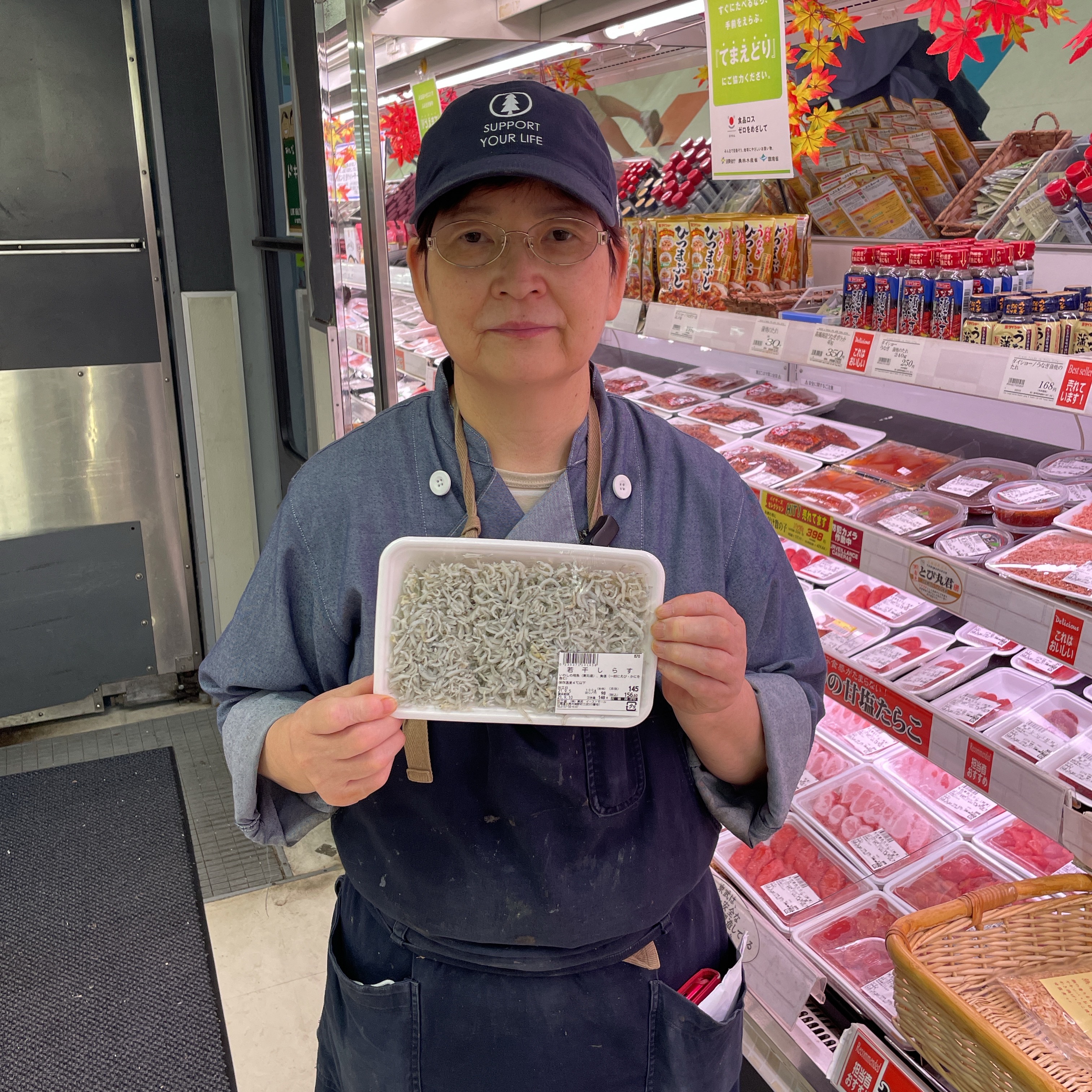 本日の鮮魚コーナーからのおすすめです。 しらす100g当たり98円(税抜)となっておりますので是非ご来店ご利用お待ちしております。