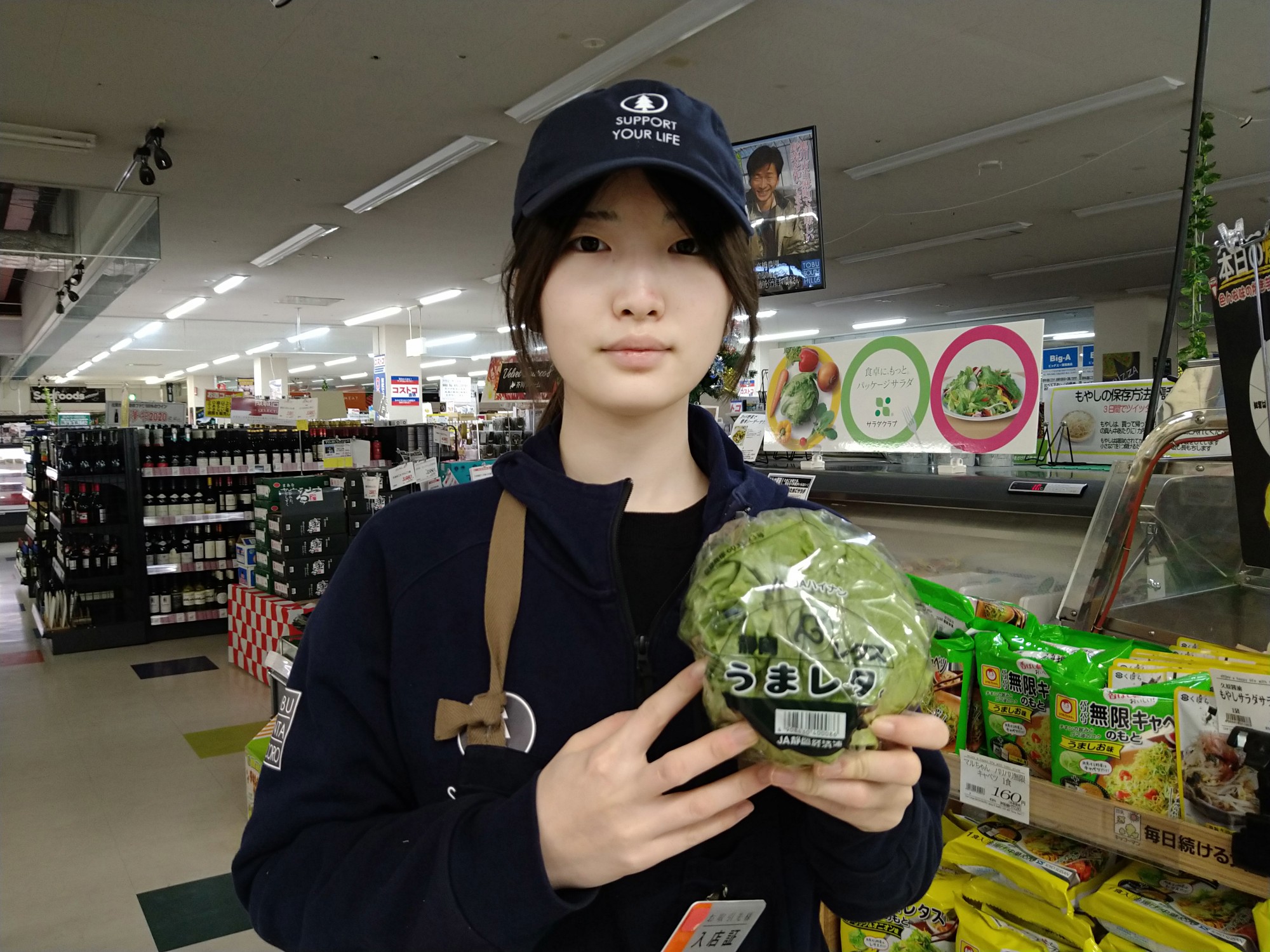 おはようございます。青果コーナーでは、静岡産レタス1玉149円(本体価格)にて販売しております。炒め物やしゃぶしゃぶ等にも合います。どうぞお試しください。