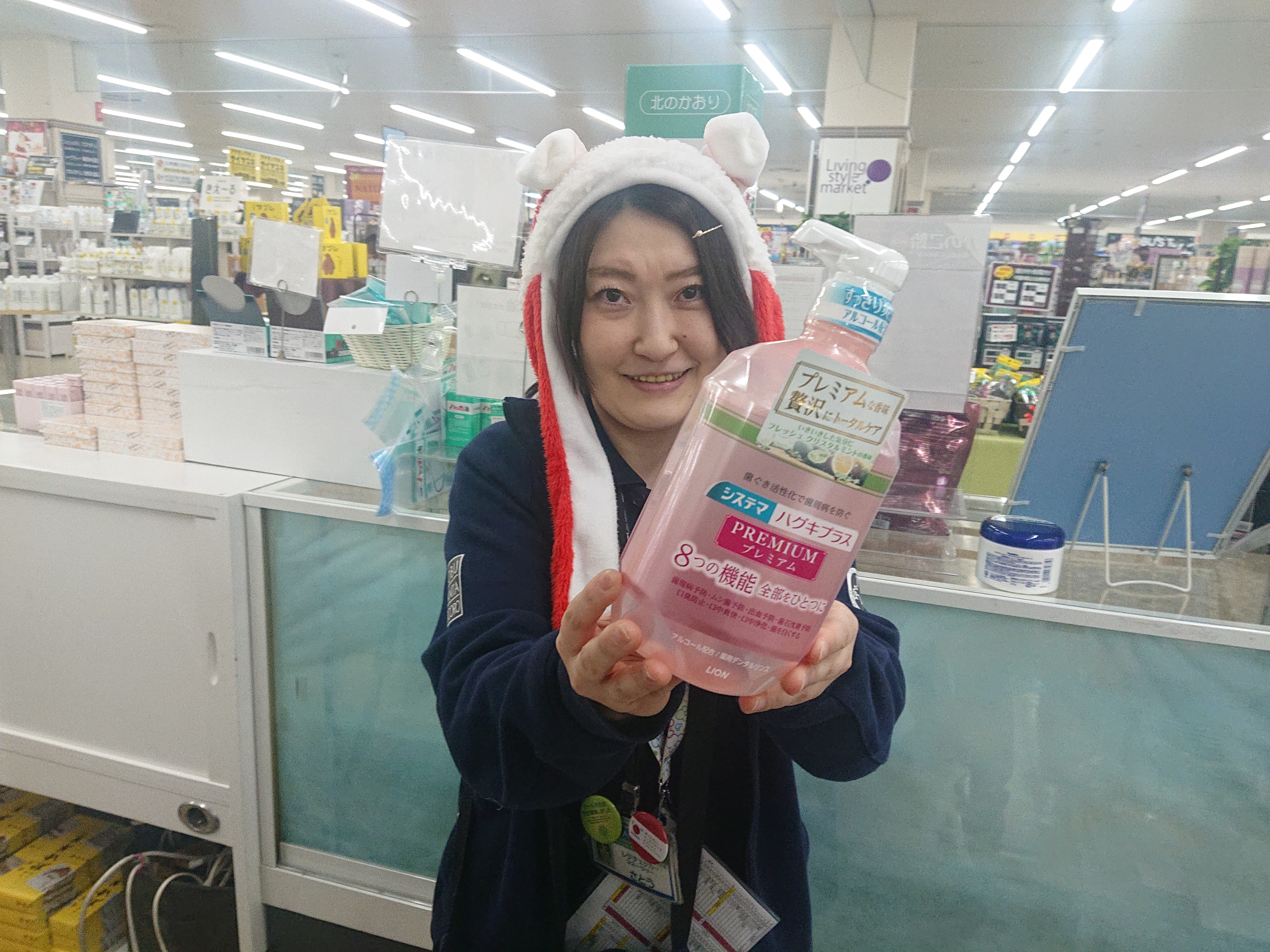 おはようございます。家庭消耗品担当小西です。本日のおすすめ商品は、システマデンタルリンスです。口臭予防にもおすすめです。