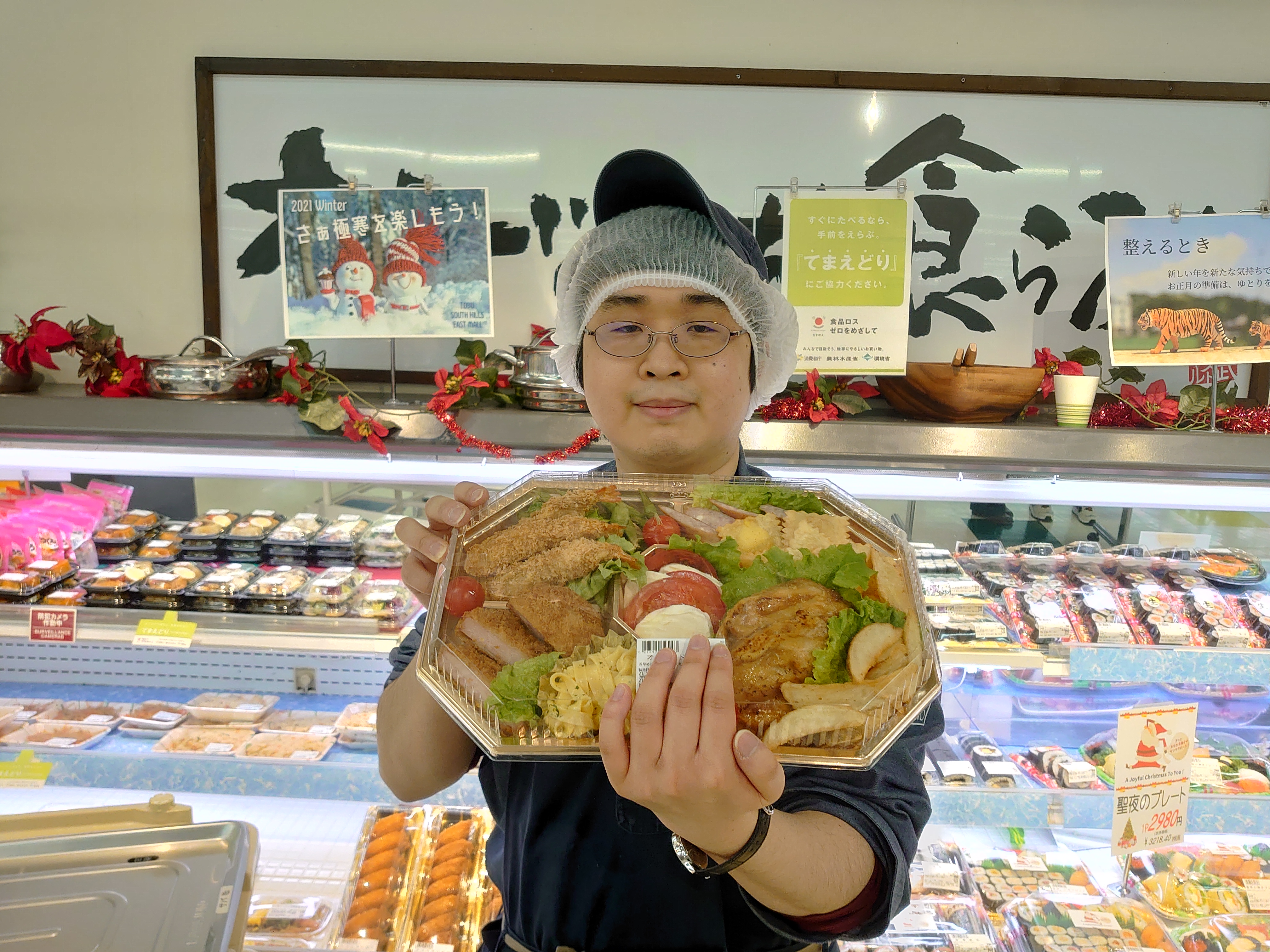 おはようございます。惣菜担当小川です。今日はクリスマスイブですね。エビフライ、フライドポテト、チキンレッグ等など入ってるオードブルを食べながら友達や家族皆んな等などクリスマスを楽しみましょう。