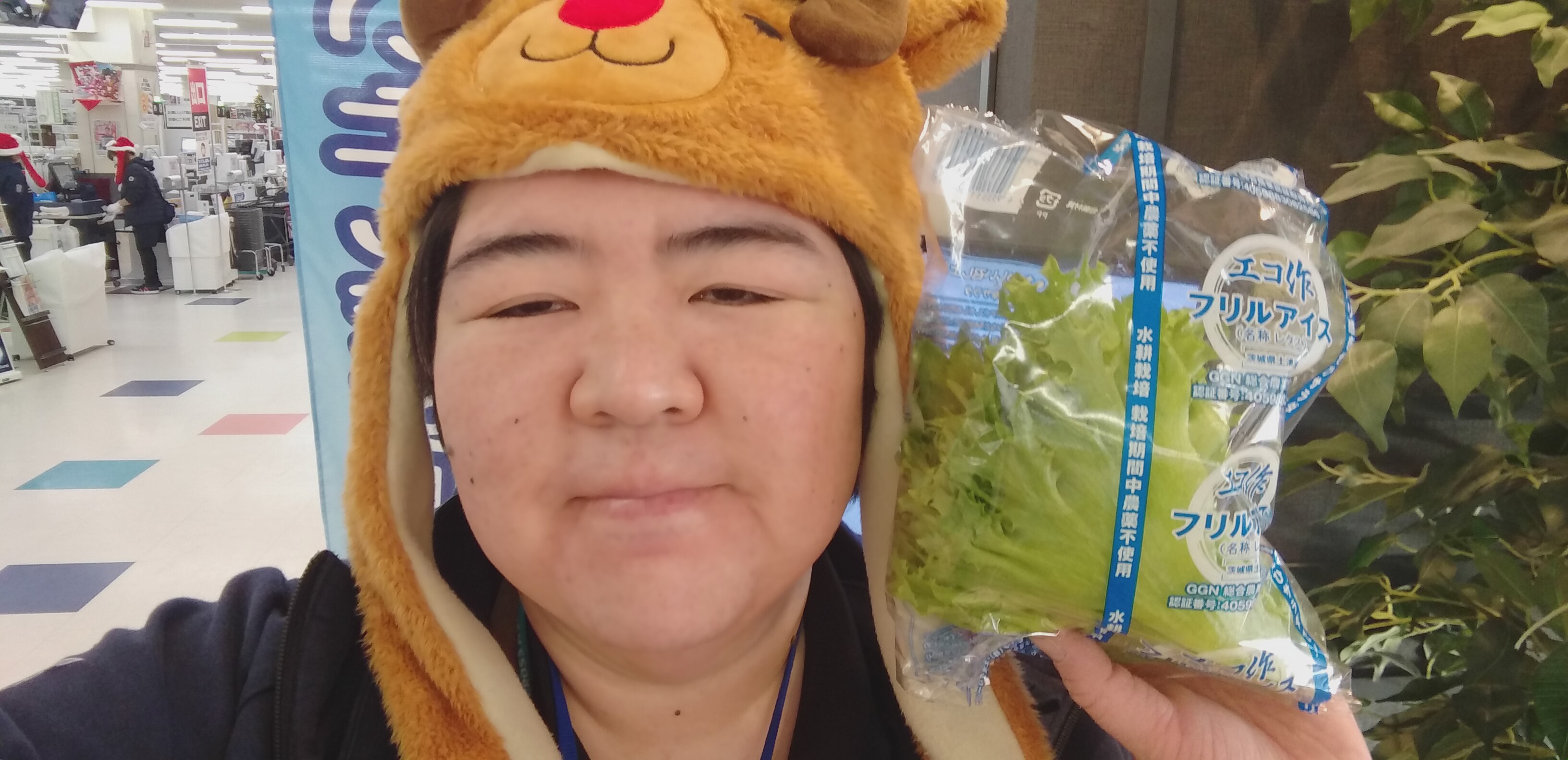 おはようございます。青果担当奥瀬です。本日より茨城直送セール開催です。オススメは水耕栽培のレタス「エコ作」シリーズ。葉が柔らかく、好評頂いている商品です。クリスマスのサラダにいかがでしょうか。1袋198円です。是非ご利用くださいませ。