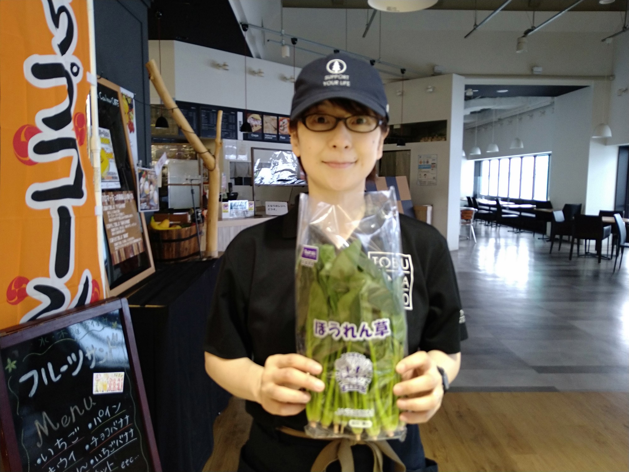 おはようございます。青果コーナーでは、茨城県産ほうれん草お1人様2点限りとなりますが、1袋100円(本体価格)にて販売しております。お早めにお買い求めください。