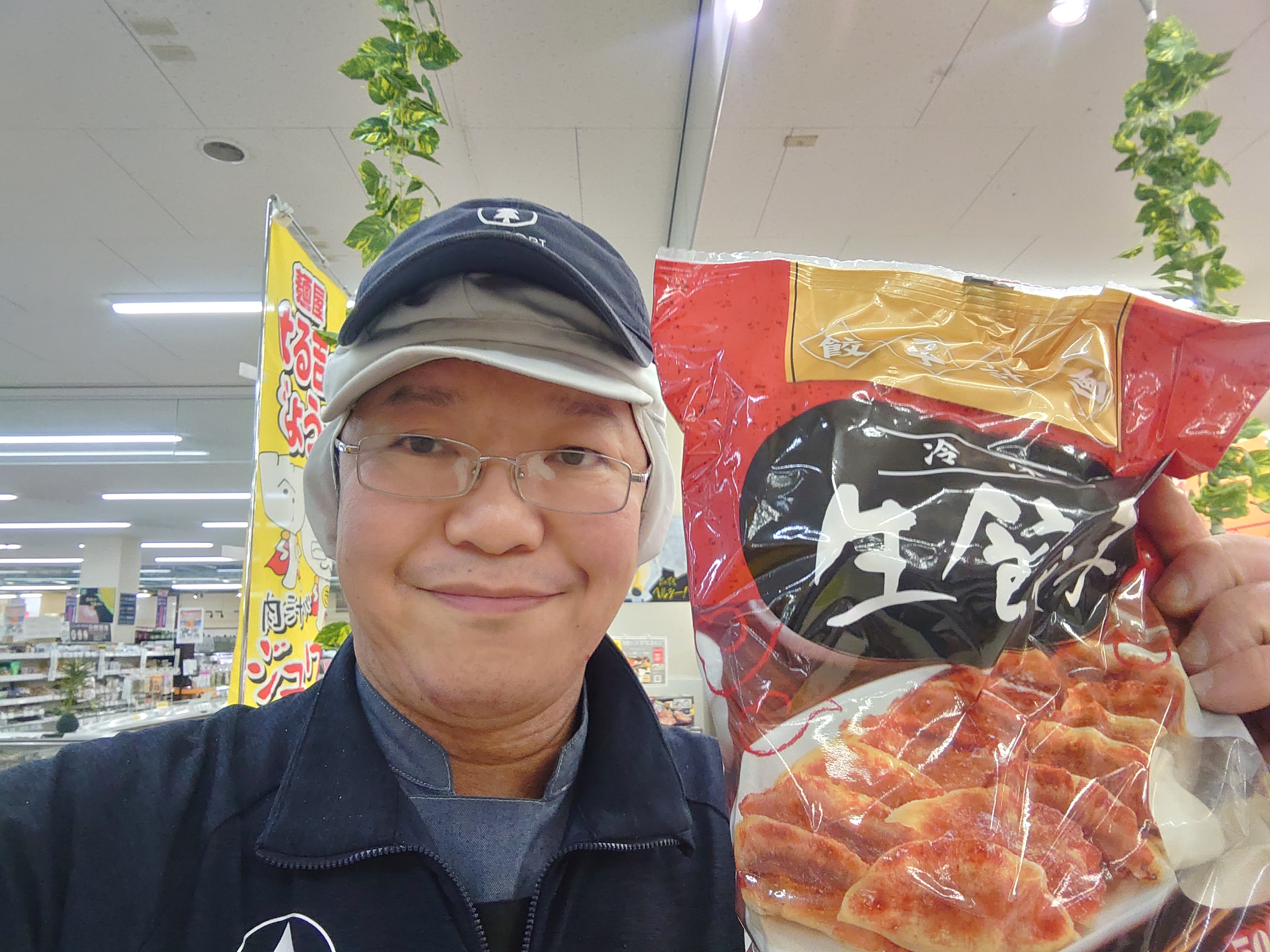おはようございます。ミート担当近藤です。冷凍餃子をフライパンにオーブンペーパーを挽いて焼くだけで、簡単に美味しくて、お肉のたっぷり詰まった餃子ができます。なお、冷凍といっても、固まっていなくて、バラバラになっているので、必要なだけ使えるのでとっても便利です。