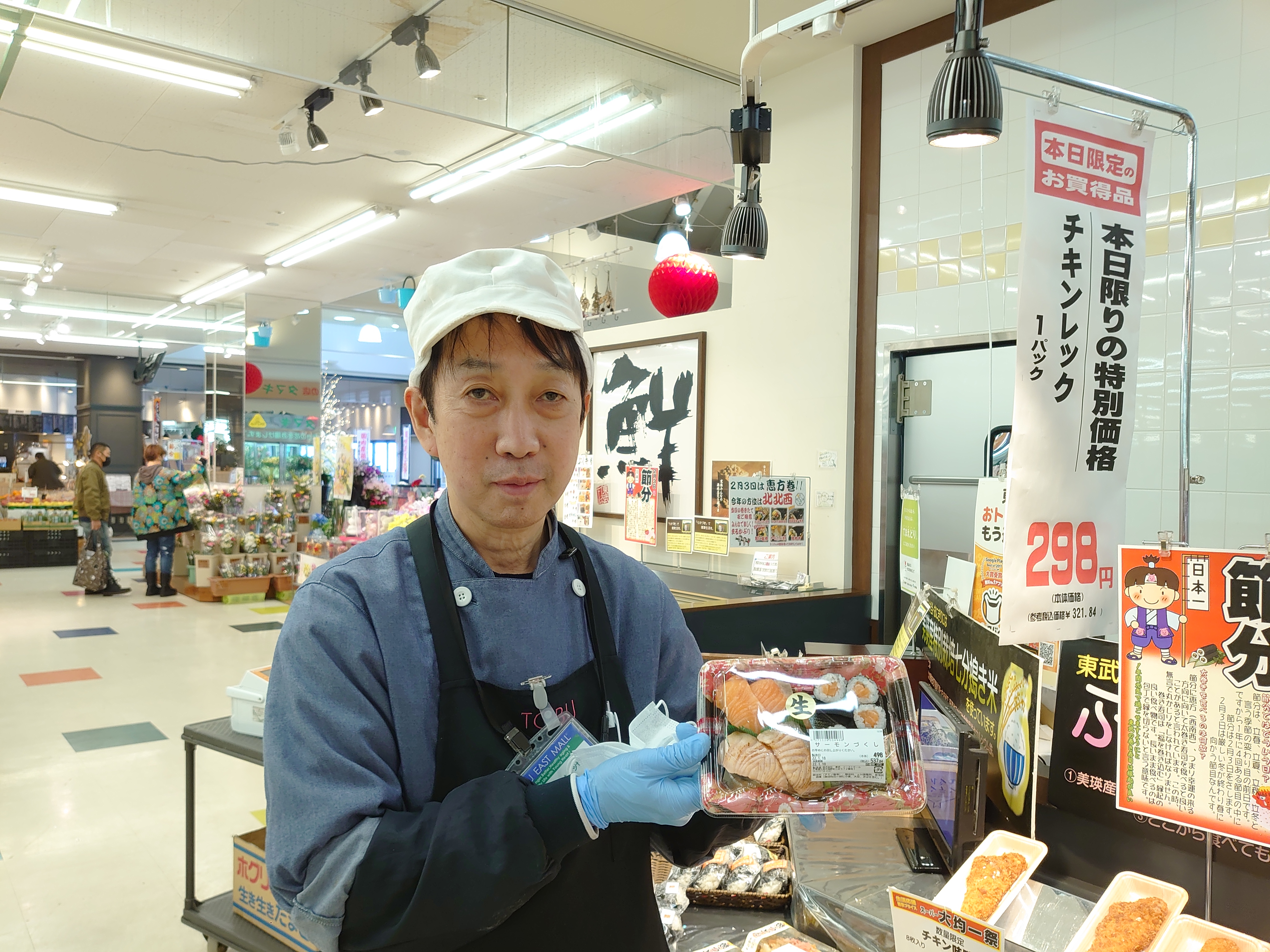 おはようございます。惣菜担当田中です。サーモン寿司、炙りサーモン寿司各2巻とサーモン細巻き4巻入ってますのでサーモン好きな方にはたまらないですね。